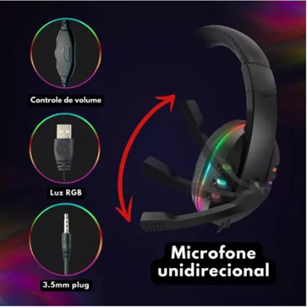 Fone Gamer Led RGB Headset com microfone USB e P2 Para PC Computador Celular Headphone Videogam
