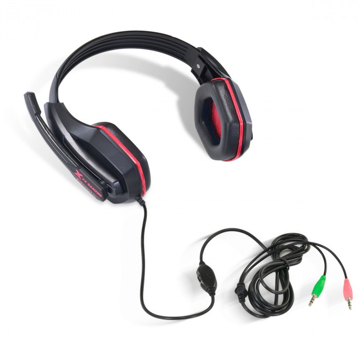 Fone Headset Gamer VX Gaming OGMA P2 Stereo Com Microfone - Preto e Vermelho