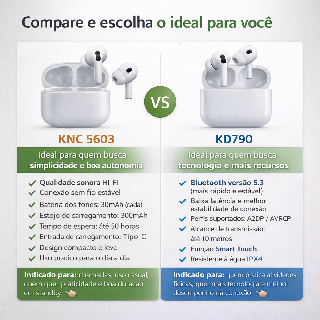 Fone Sem Fio Bluetooth KAIDI Som Premium Com Cancelamento De Ruído E Bateria Ate 40H