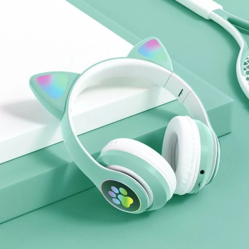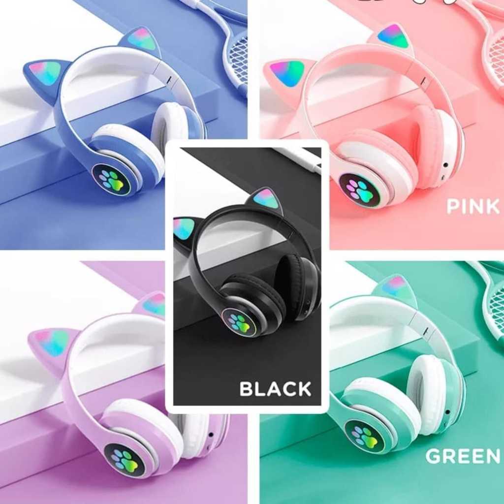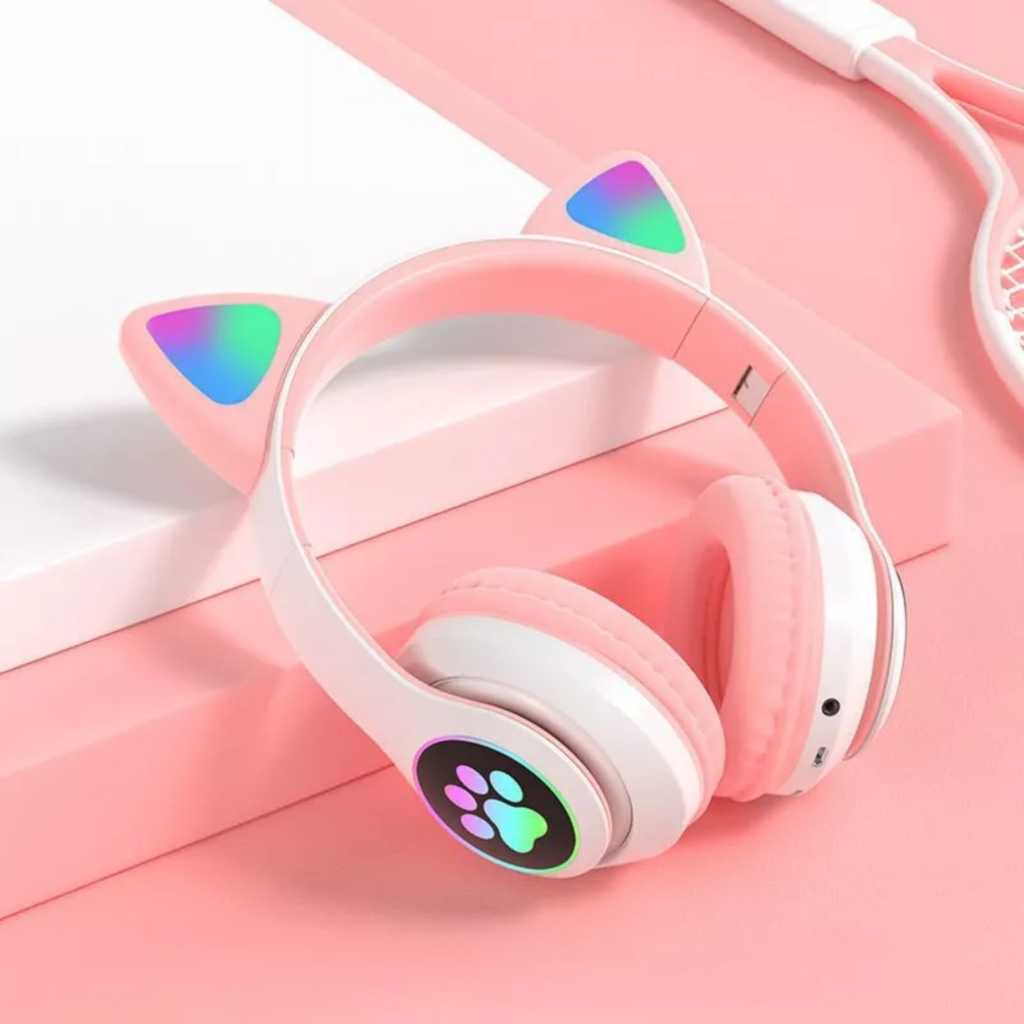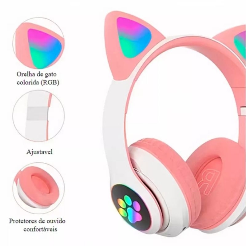 Fone de Orelha Gatinho Dobrável Led Infantil Adulto P2 Headphone Com Bluetooth Cosplay Design