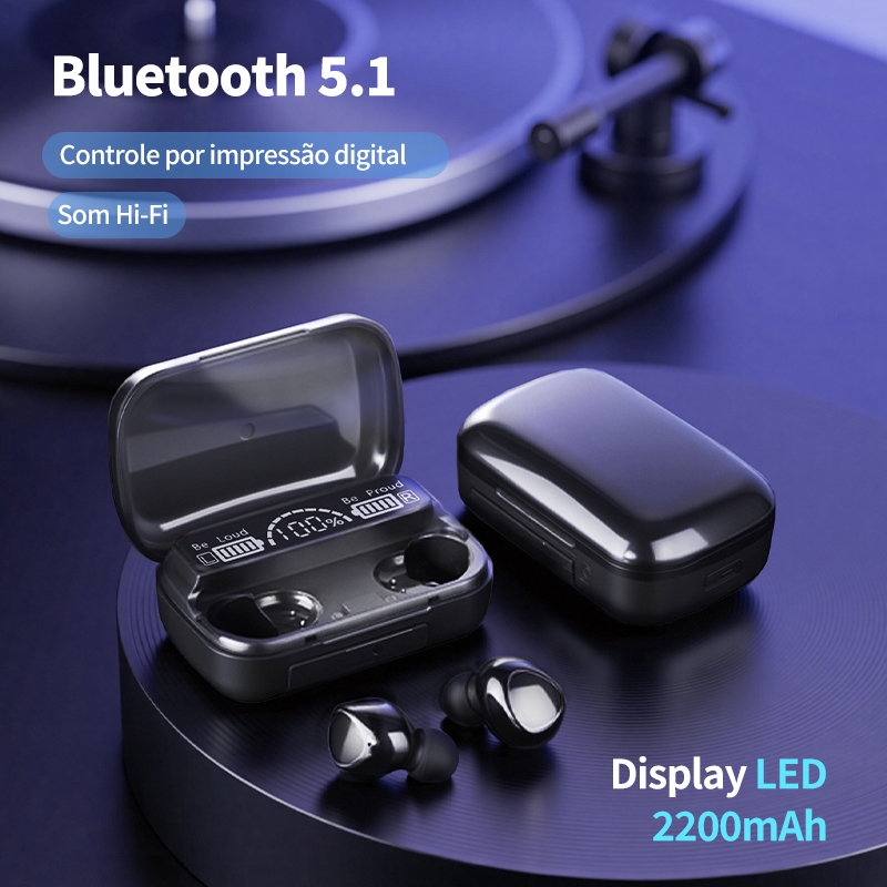 Fone de Ouvido Bluetooth M10 Sem Fio TWS com Estojo de Carregamento Bluetooth 5.0
