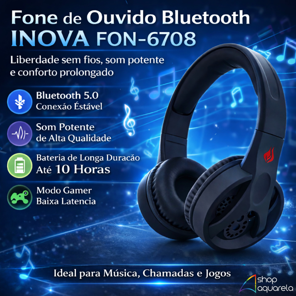 Fone de Ouvido Bluetooth Original Inova Sem Fio Headphone Wireless