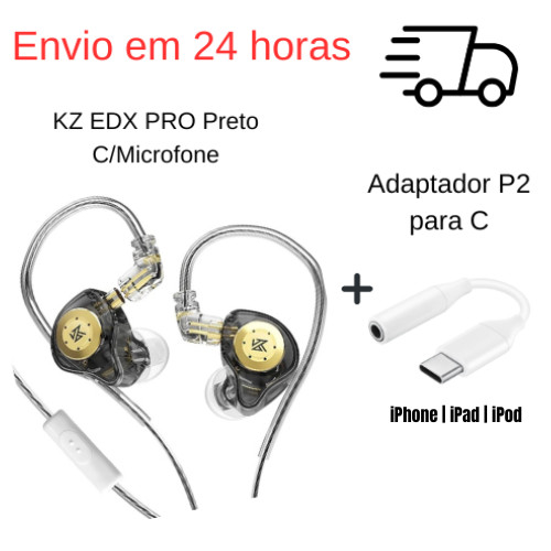 KZ EDX Pro Fone In Ear Original Com Microfone Grave Forte Hi-Fi Gamer Profissional Cabo Removível