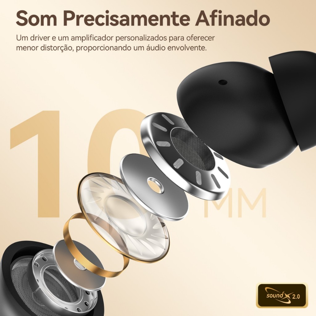 Fone de Ouvido Stage Hero6 TWS com Cancelamento de Ruído Ativo Bluetooth 5.2 com 4 mic-Envio Brasil