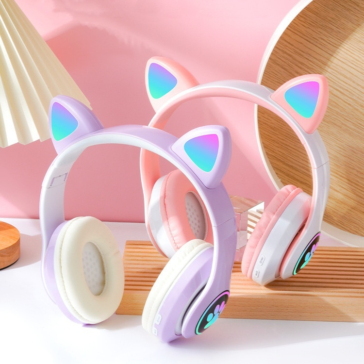 Fone de Ouvido com Redução de Ruído Orelha De Gato Gamer Led RGB Colorido