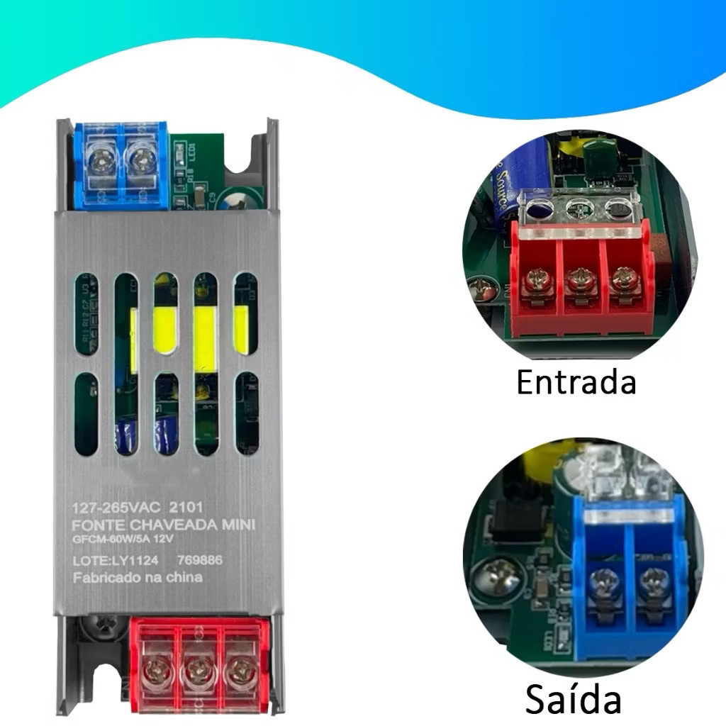 Fonte Chaveada Mini Slim 12v 5a 60w Bivolt Led Eletrônicos