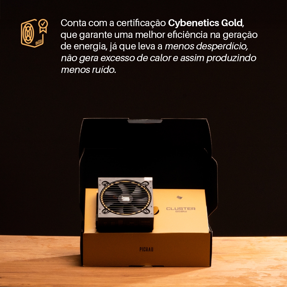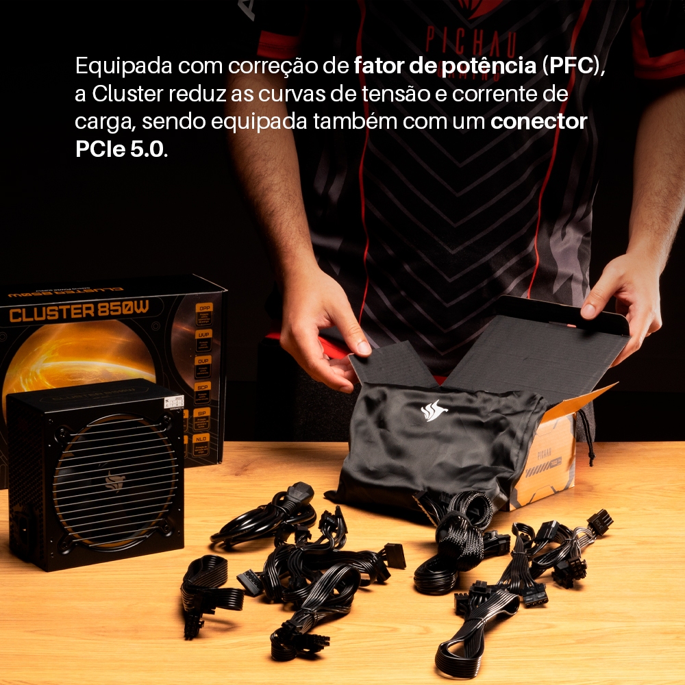 Fonte Pichau Cluster, 850W, PCIe 5.0, Full Modular, 80 Plus Gold, Preto, PG-CL850-BK01