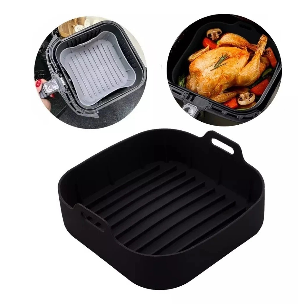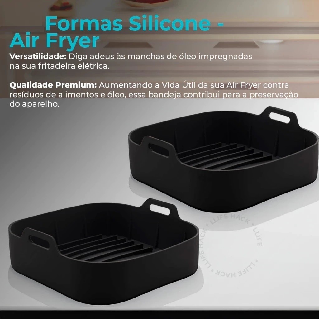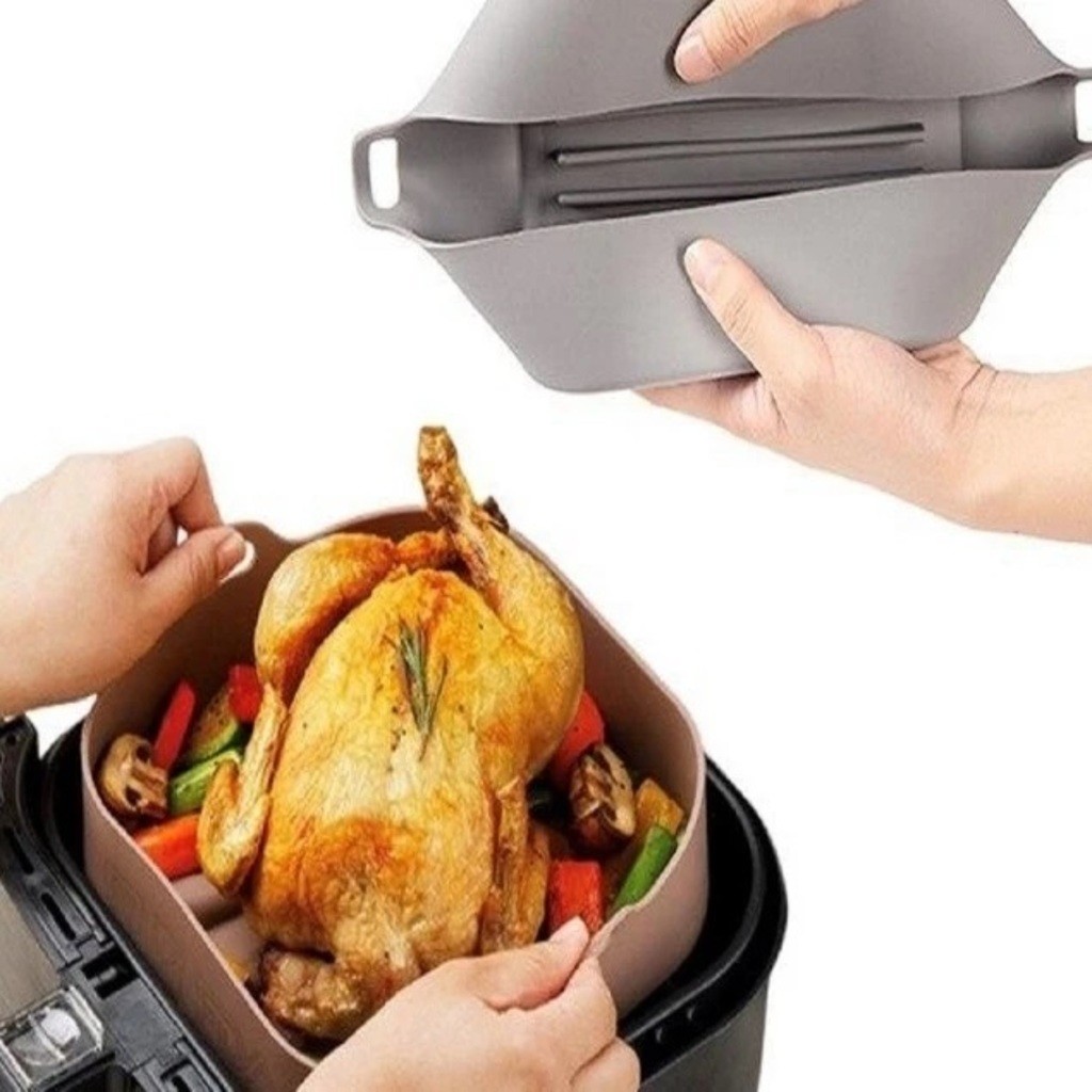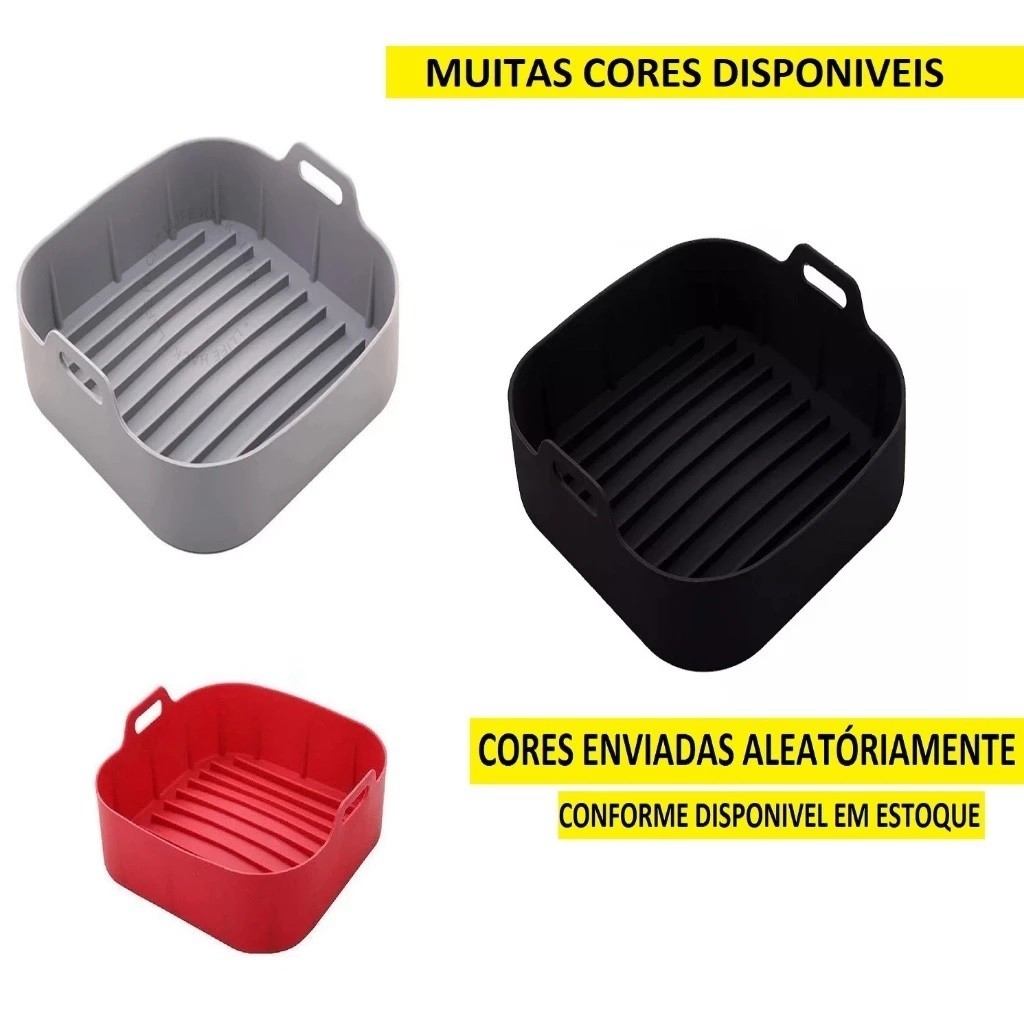 Forma AirFlryer De Silicone Grosso Resistente 19Cm De 180g Ou 16Cm De 155g Com Alças Quadrada Clink