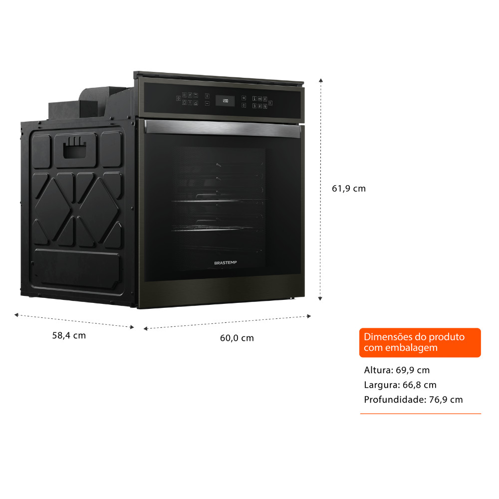 Forno de Embutir Elétrico Brastemp 84L Eclipse Collection com Convecção e Termômetro Meat Control - BOT84AP