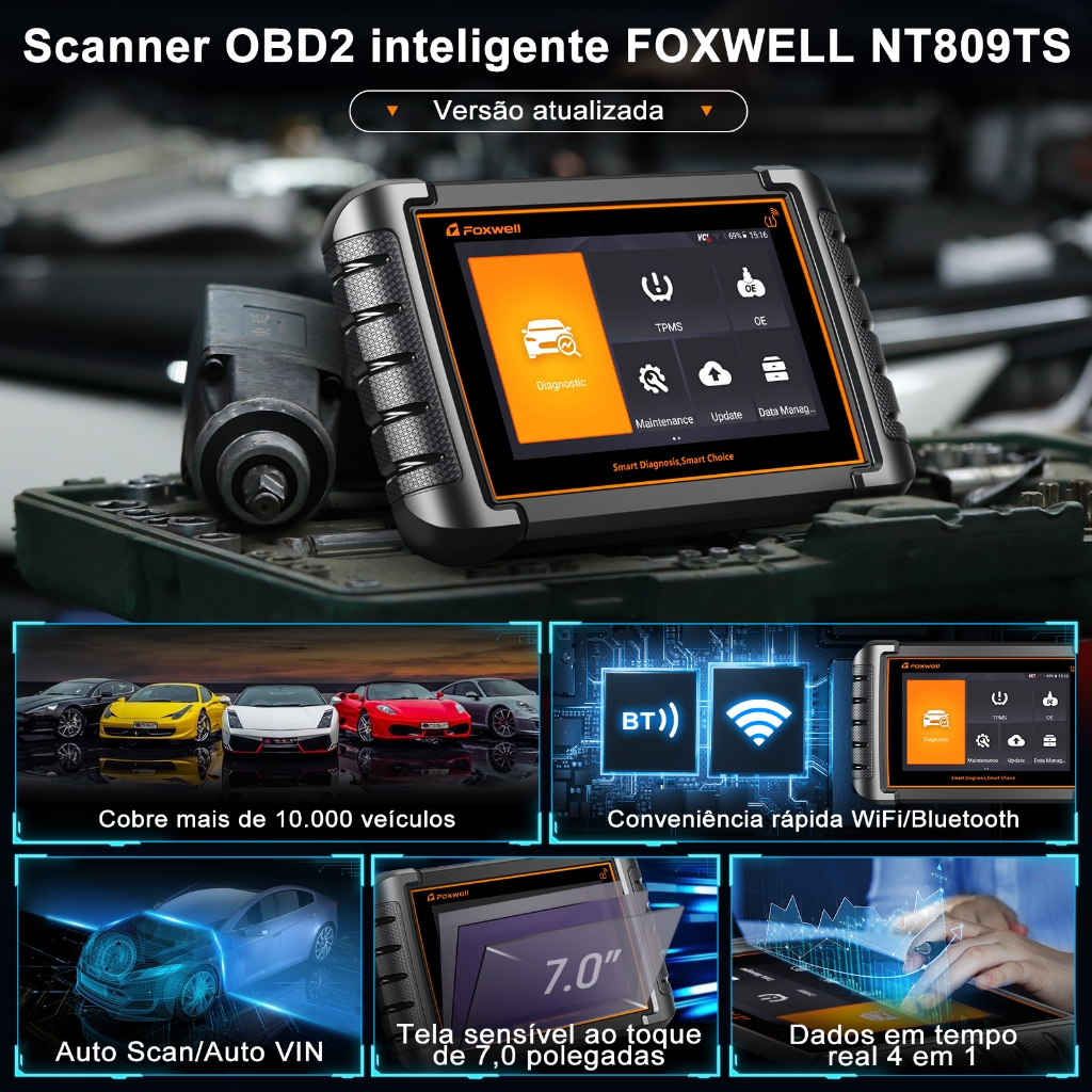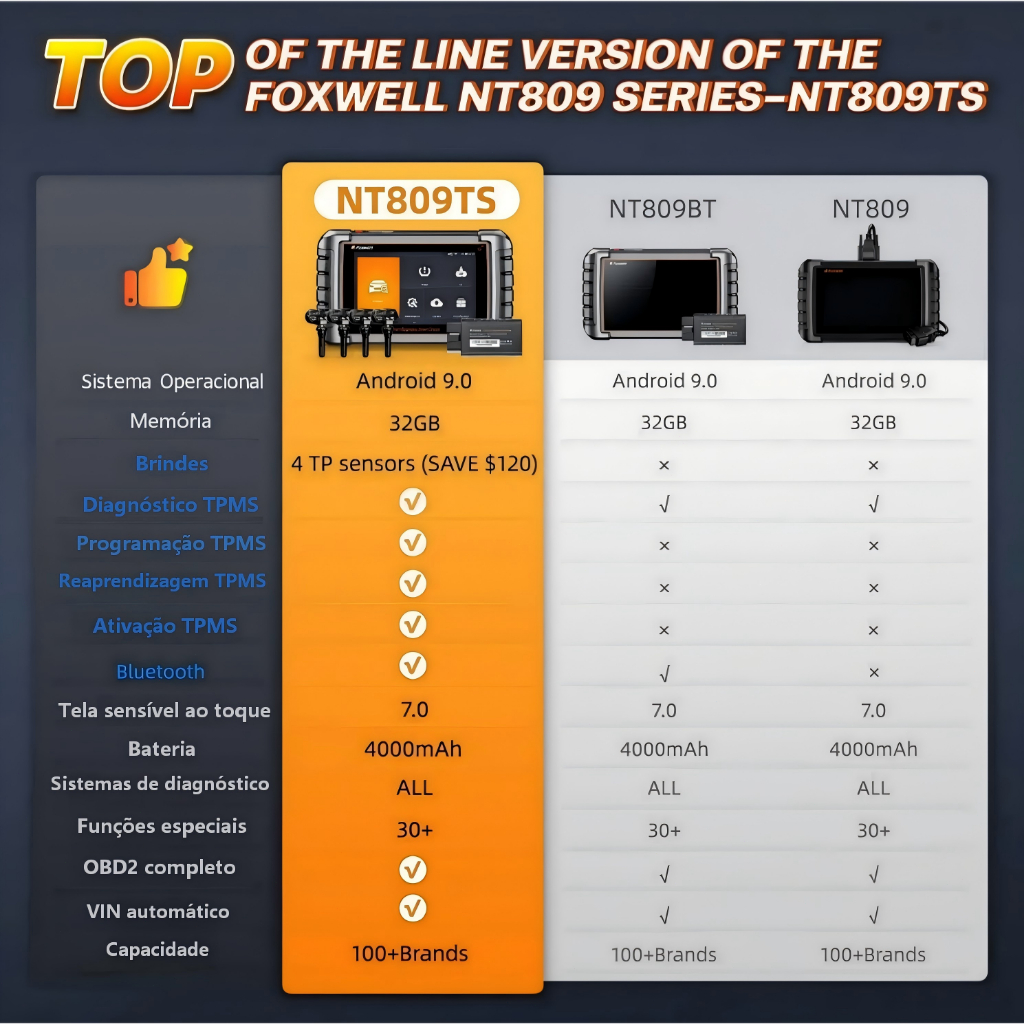 Foxwell NT809TS TPMS Scanner Automotivo Ferramenta De Programação Todos os Sistemas De Diagnóstico 30 Redefinir