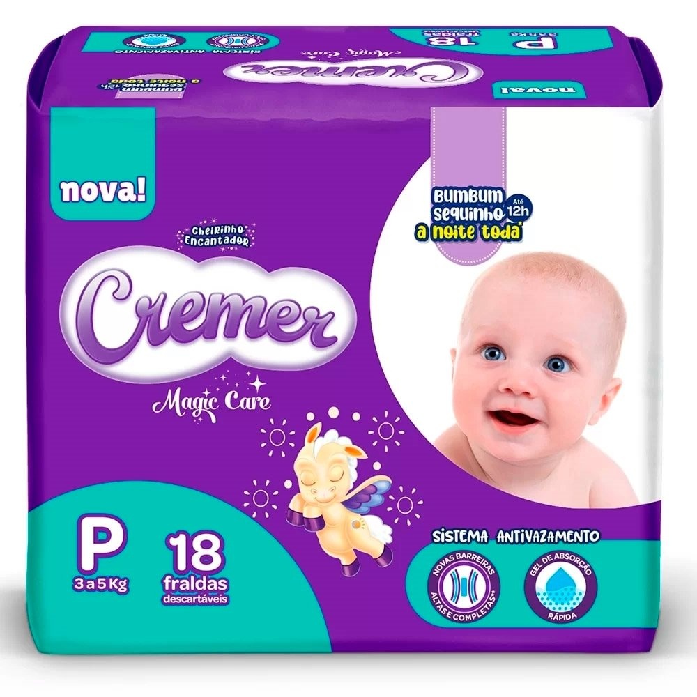 Fralda Descartável Cremer Disney Magic Care Tamanho P - 8 Pacotes com 18 Fraldas - Total 144 Tiras