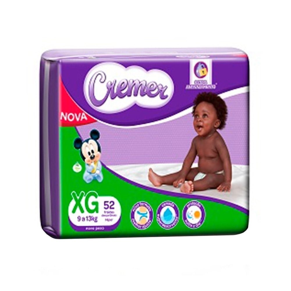 Fralda Descartável Cremer Disney Tamanho XG - 4 Pacotes com 52 Fraldas - Total 208 Tiras