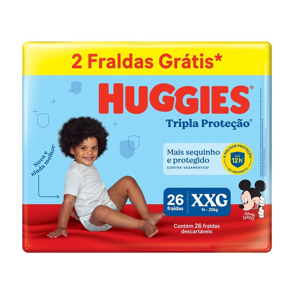 Fralda Descartável Huggies Tripla Proteção Mega Tamanho XXG - 6 Pacotes com 26 Fraldas - 156 Tiras