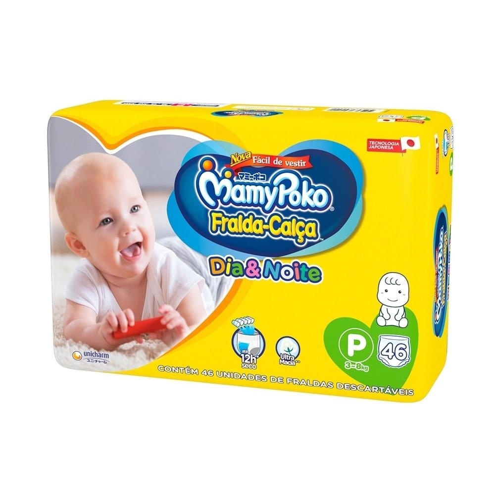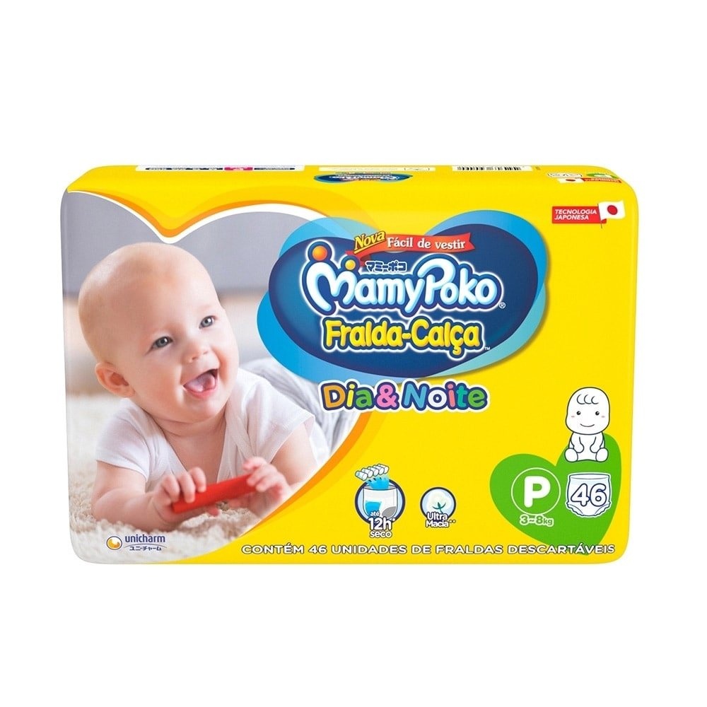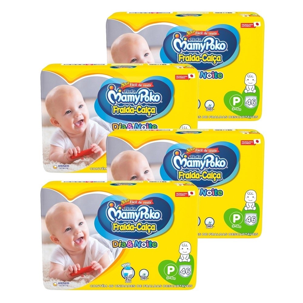 Fralda Descartável MamyPoko Calça Dia & Noite Tamanho P - 4 Pacotes com 46 Fraldas - Total 184 Tiras
