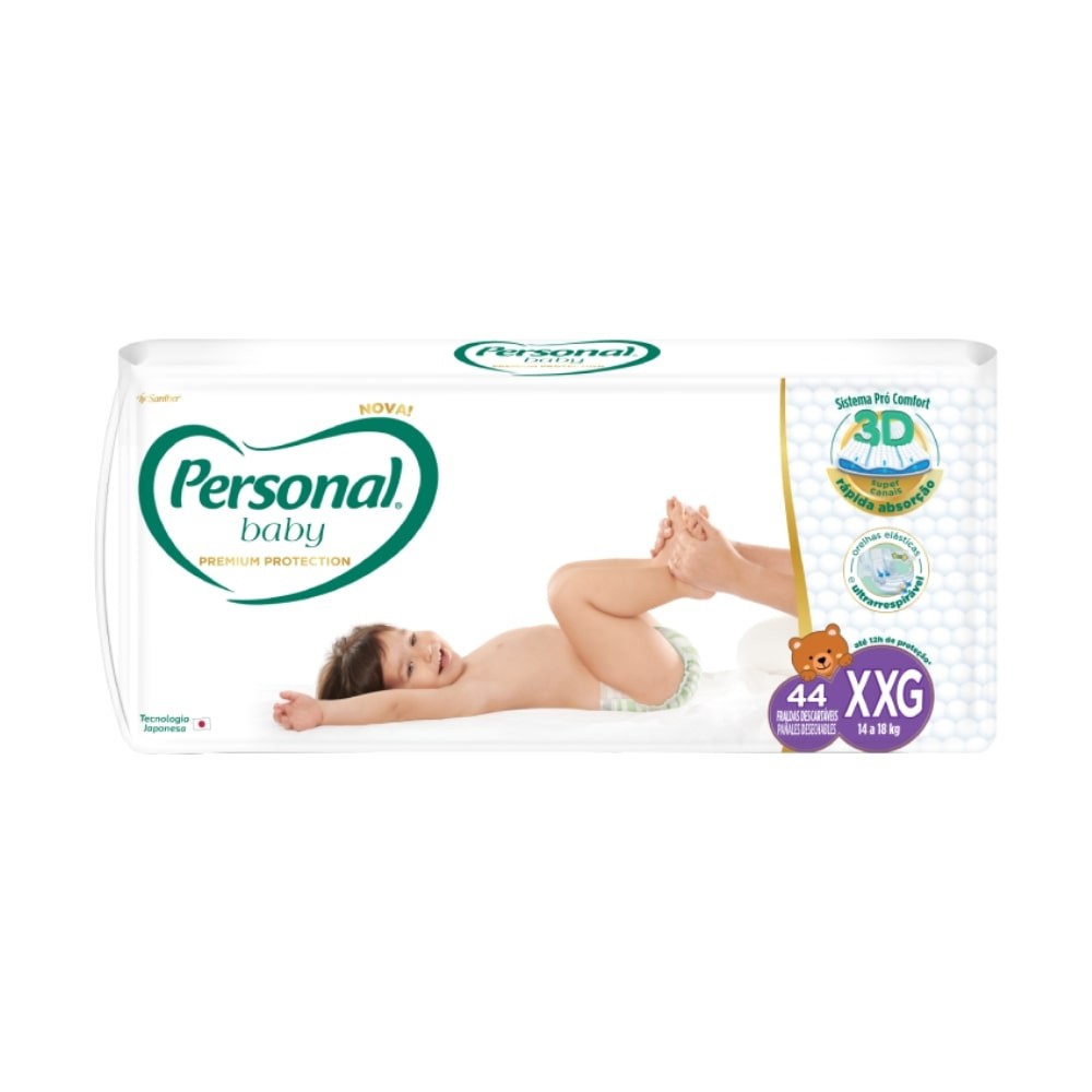 Fralda Descartável Personal Premium Hiper Tamanho XXG - 4 Pacotes com 44 Fraldas - Total De 176 Tiras