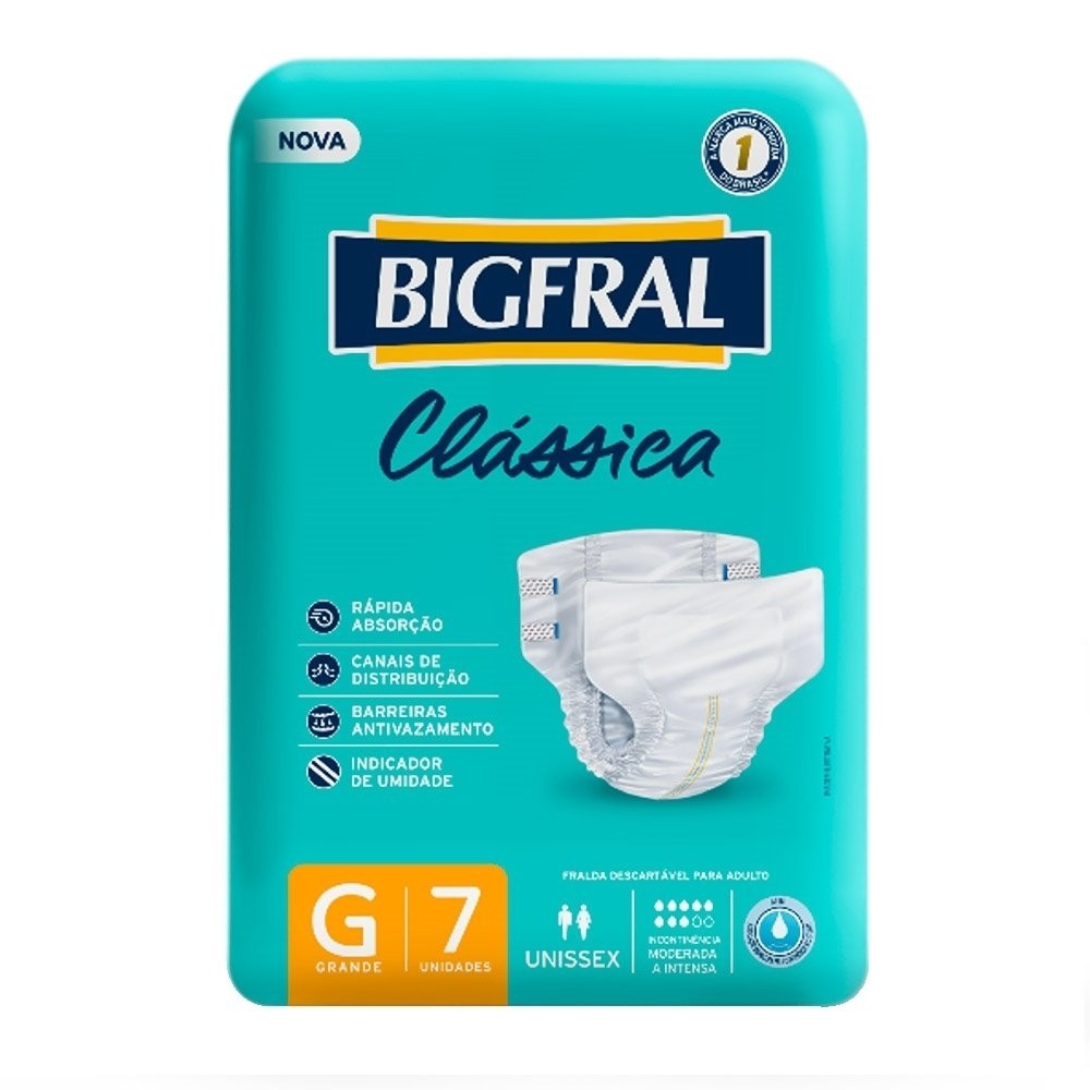 Fralda Geriátrica Bigfral Clássica Tamanho G - 8 Pacotes com 7 Fraldas - Total 56 Tiras