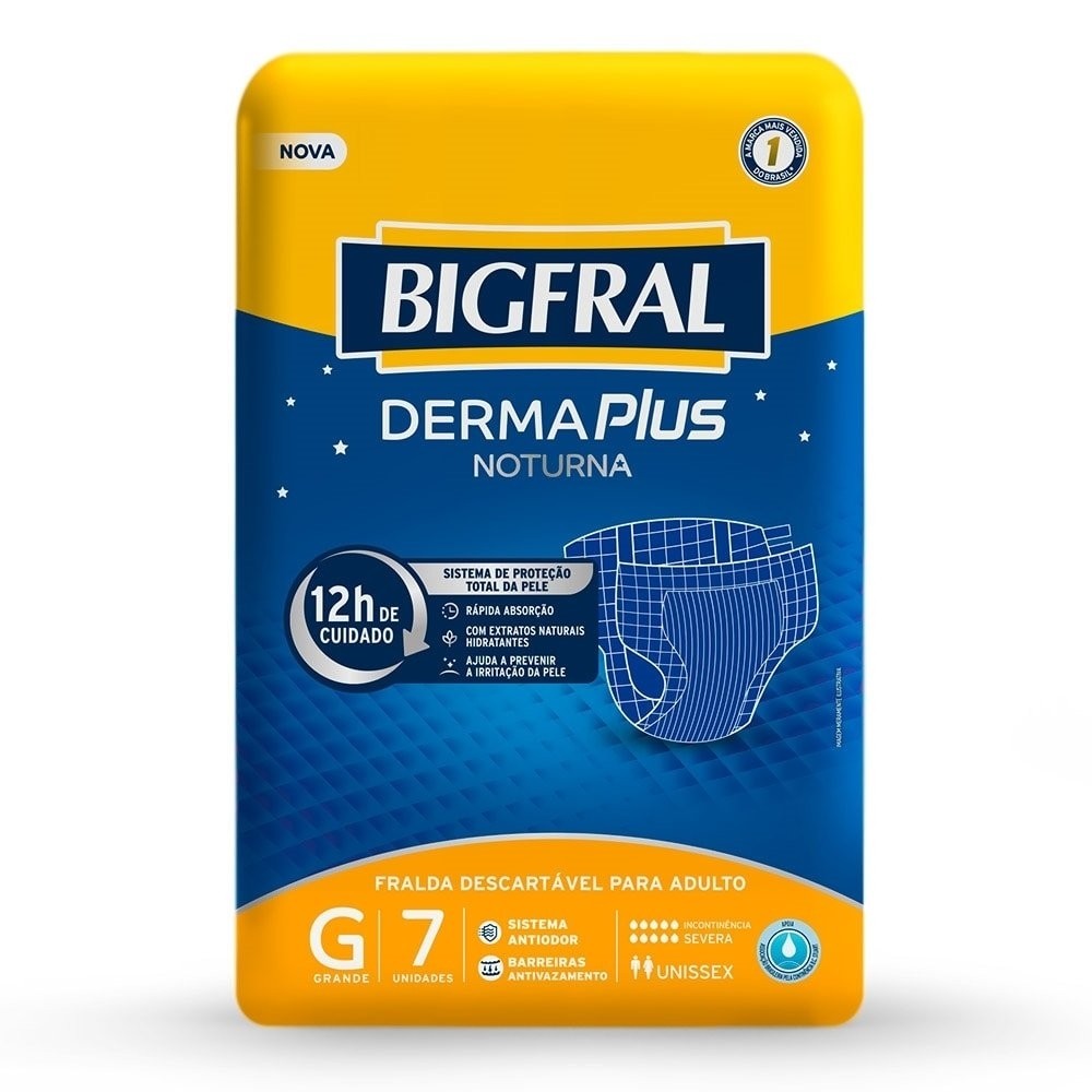 Fralda Geriátrica Bigfral Derma Plus Noturna Tamanho G - 8 Pacotes com 7 Fraldas - Total 56 Tiras