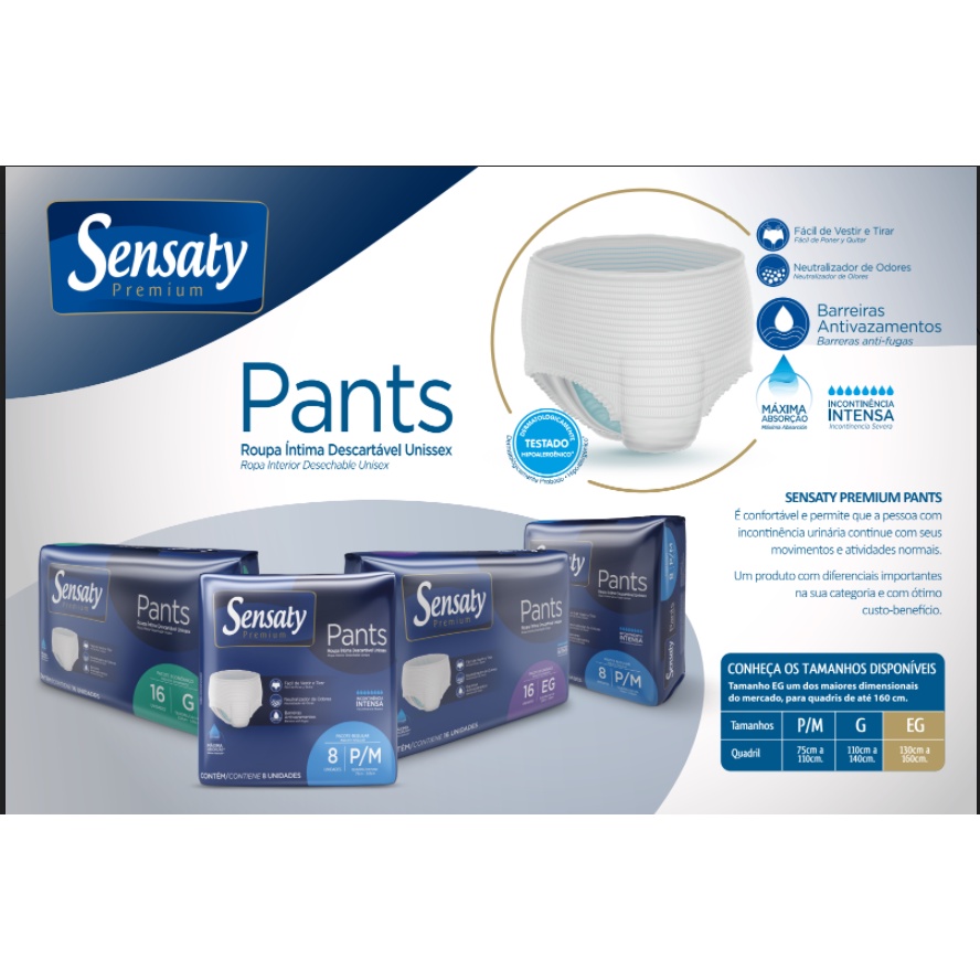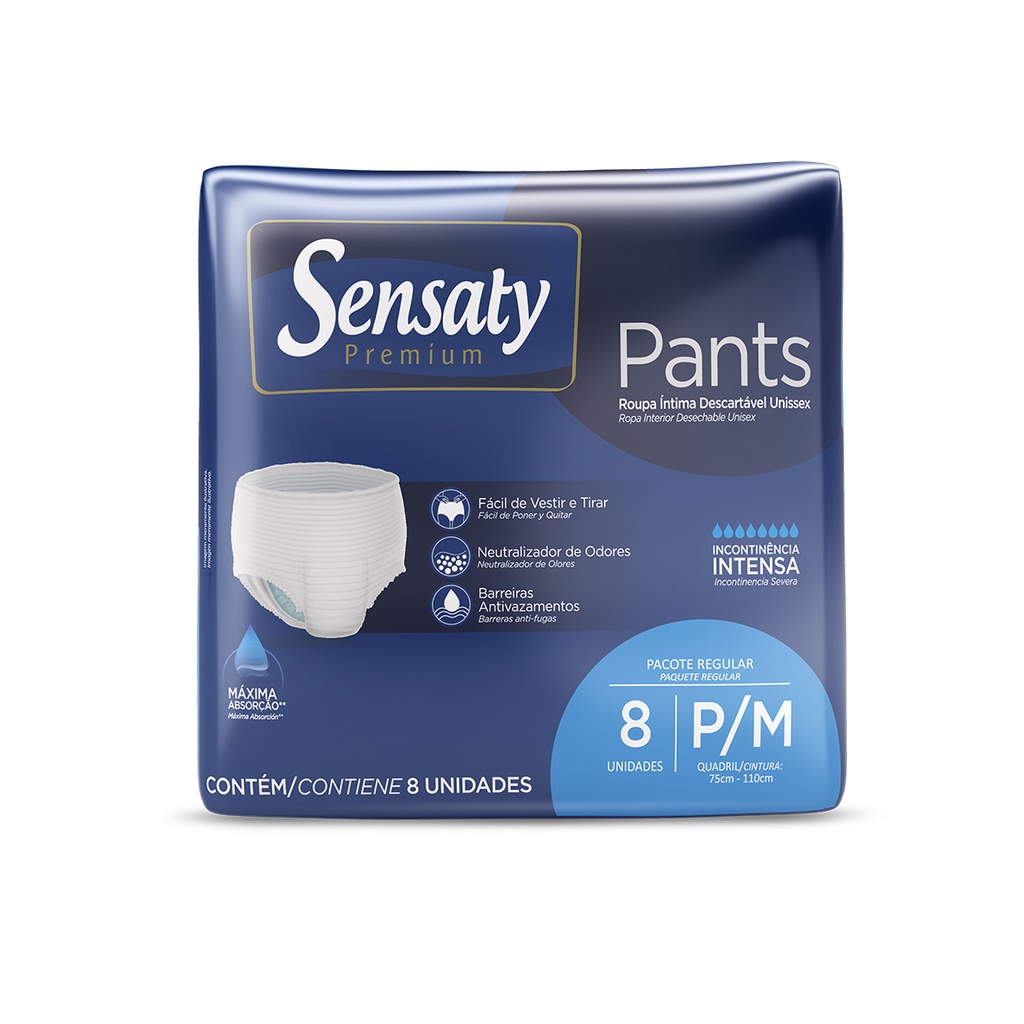 Fralda Geriátrica Sensaty Premium Pants Regular P/M 8un (Vestir)