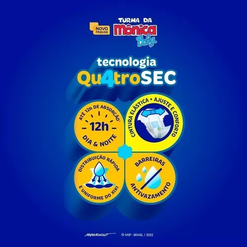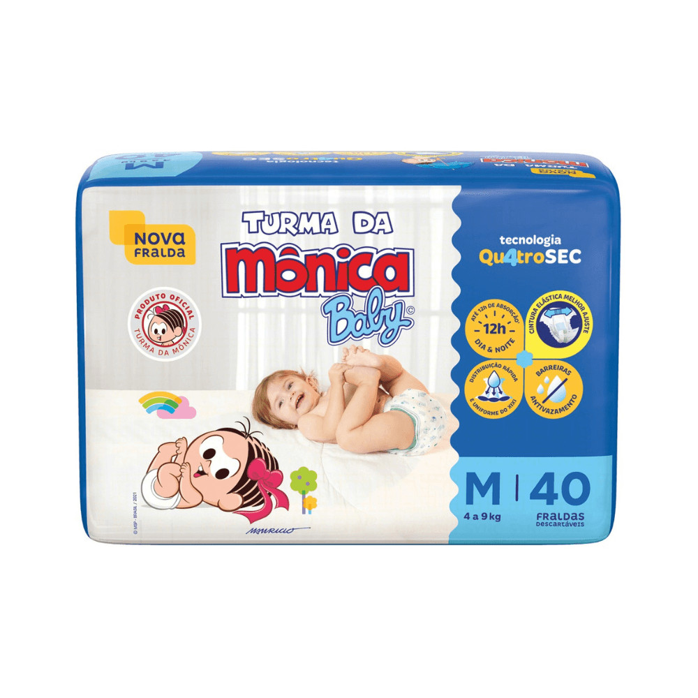 Fralda Turma da Mônica Baby M com 40 unidades - 4 a 9 kg