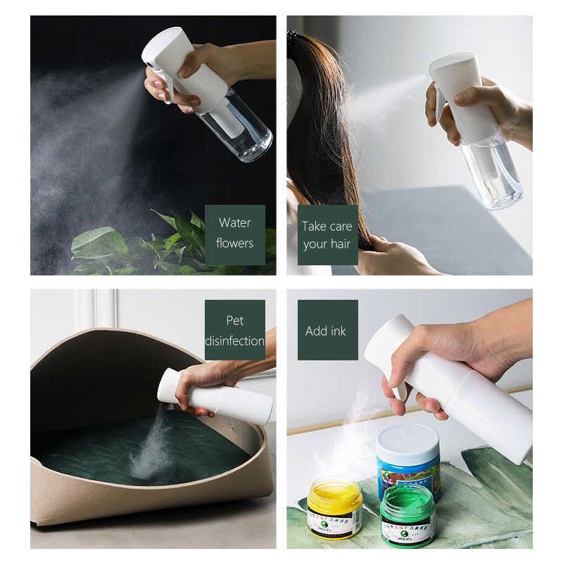 Frasco Spray 200ml Alta Pressão – Pulverizador de Névoa Contínua Fina Recarregável Multiuso Para Cabelo/ Limpeza - WYL