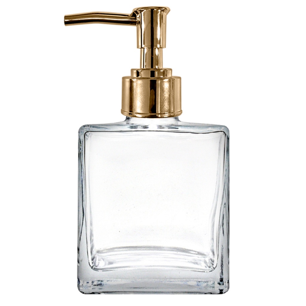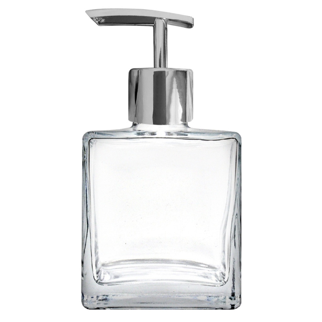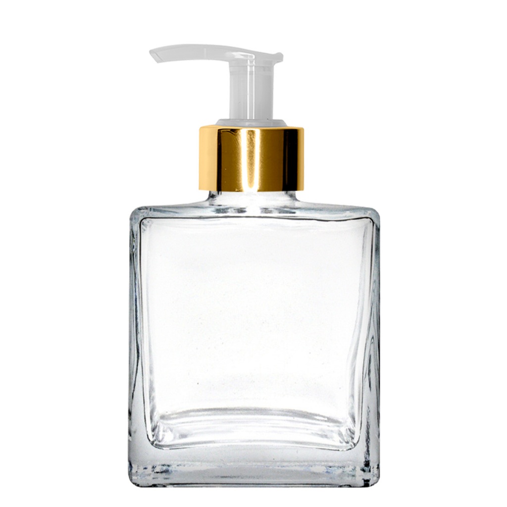 Frasco de Vidro Cristal Cubo 250ml Porta Sabonete Líquido com Válvula Pump 28/410