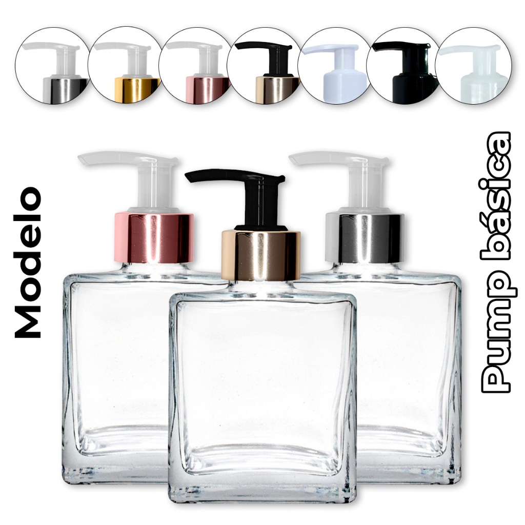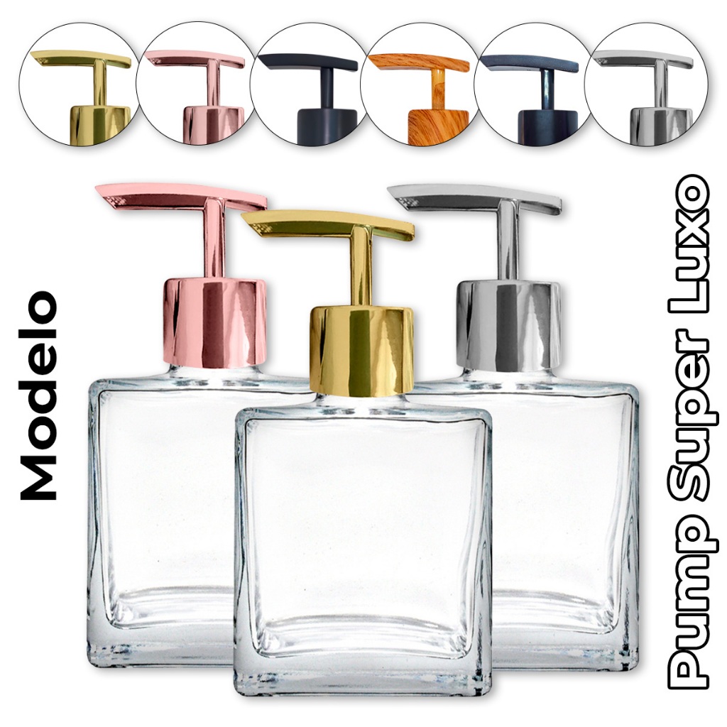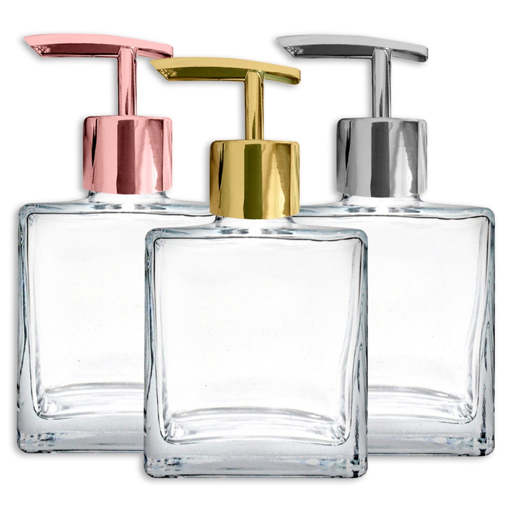 Frasco de Vidro Cristal Cubo 250ml Porta Sabonete Líquido com Válvula Pump 28/410