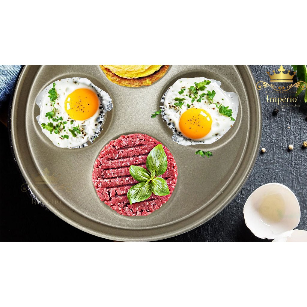 Frigideira 26 cm Divisória 4 Ovos Hambúrguer com Espátula Antiaderente Cor Cereja Gold Cobre Champanhe 4 em 1 Grossa Resistente Ovo Bacon Menos Óleo Teflon