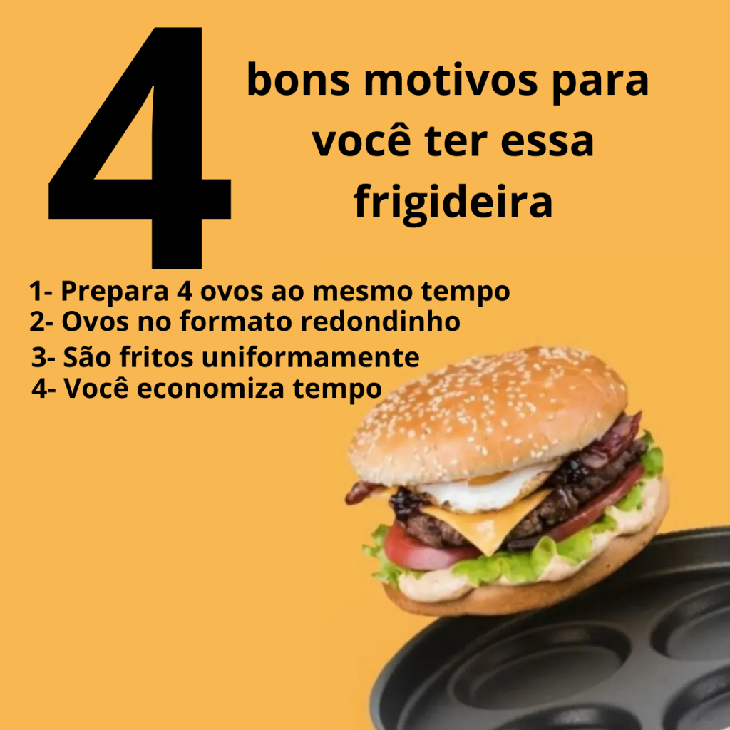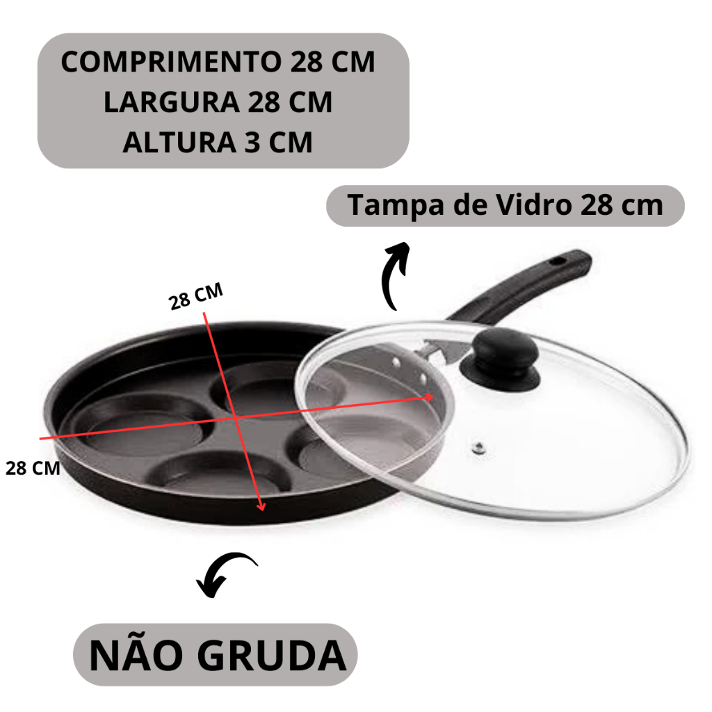 Frigideira 4 Ovos Tampa Vidro Antiaderente Teflon hambúrguer