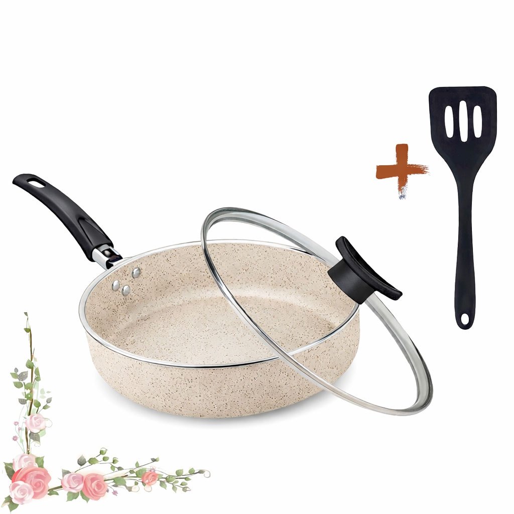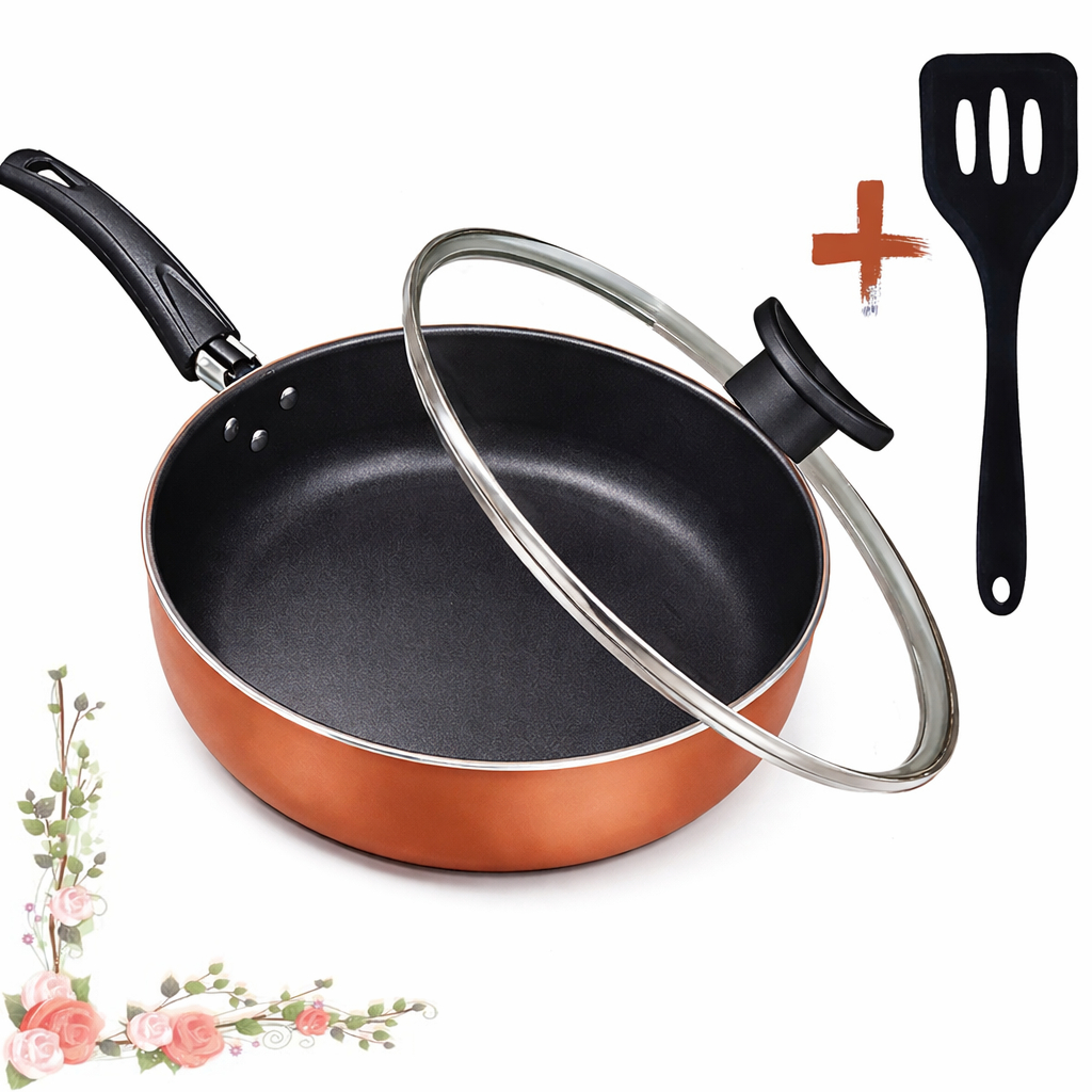 Frigideira Alta 18Cm Com Tampa De Vidro E Espátula Antiaderente 5 Camadas Teflon Cereja Gold Cobre Preta Rouge Turquesa