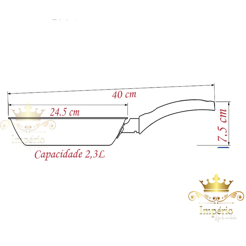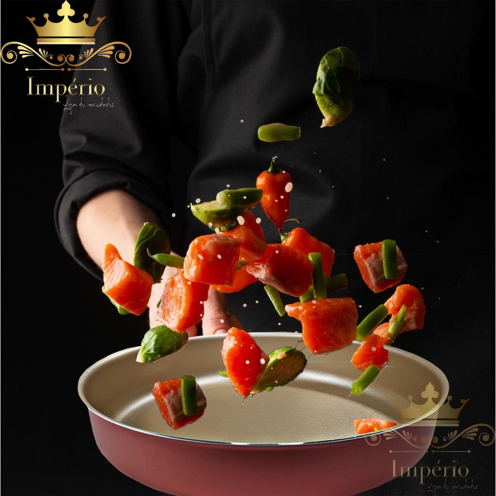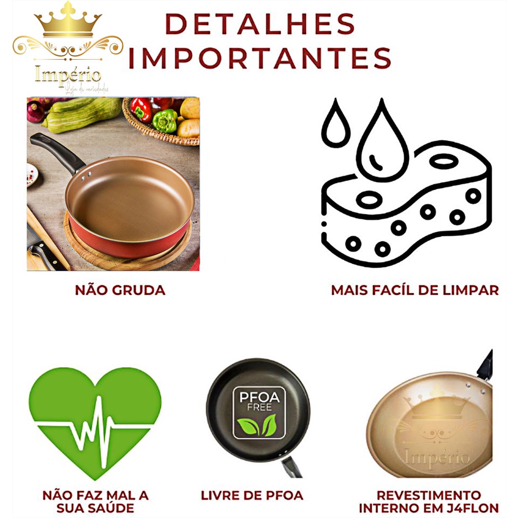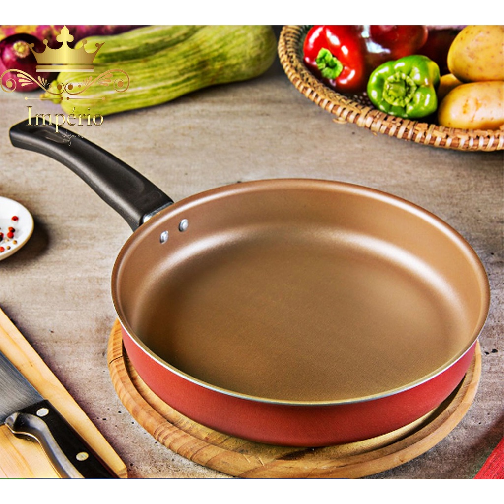 Frigideira Alta Antiaderente Com Tampa De Vidro e Espátula 24Cm Grande Teflon Cor Cereja Bege Dourado Alumínio Grosso