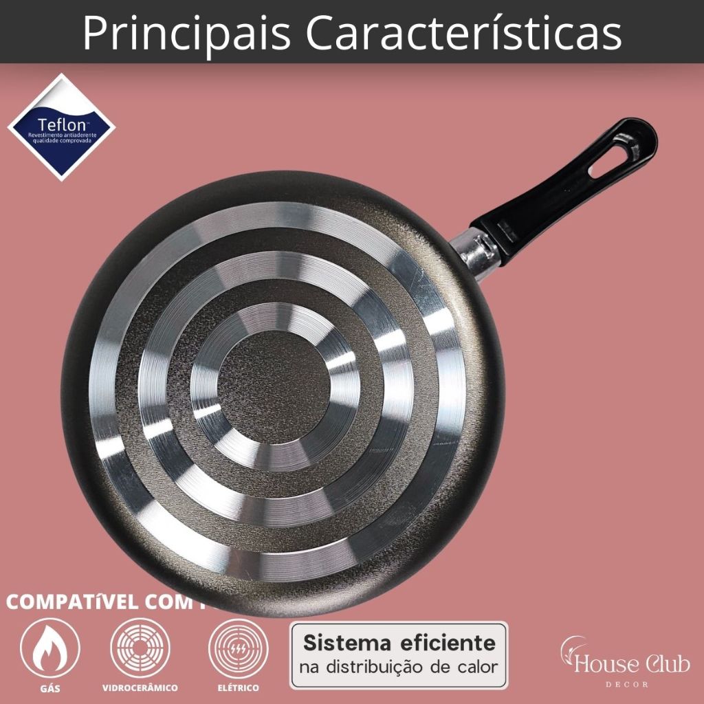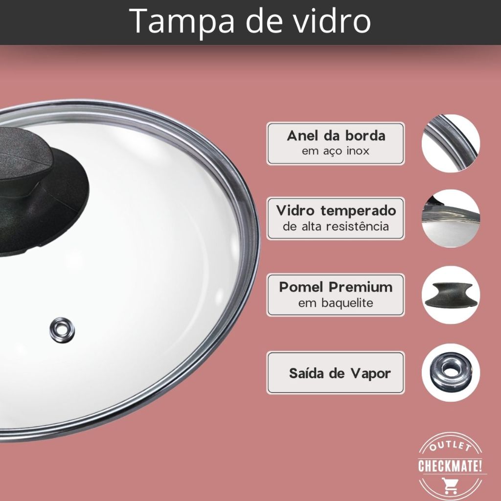 Frigideira Alta 24 cm Antiaderente 5 Camadas De Teflon com Tampa de Vidro Cor Preto Grafite