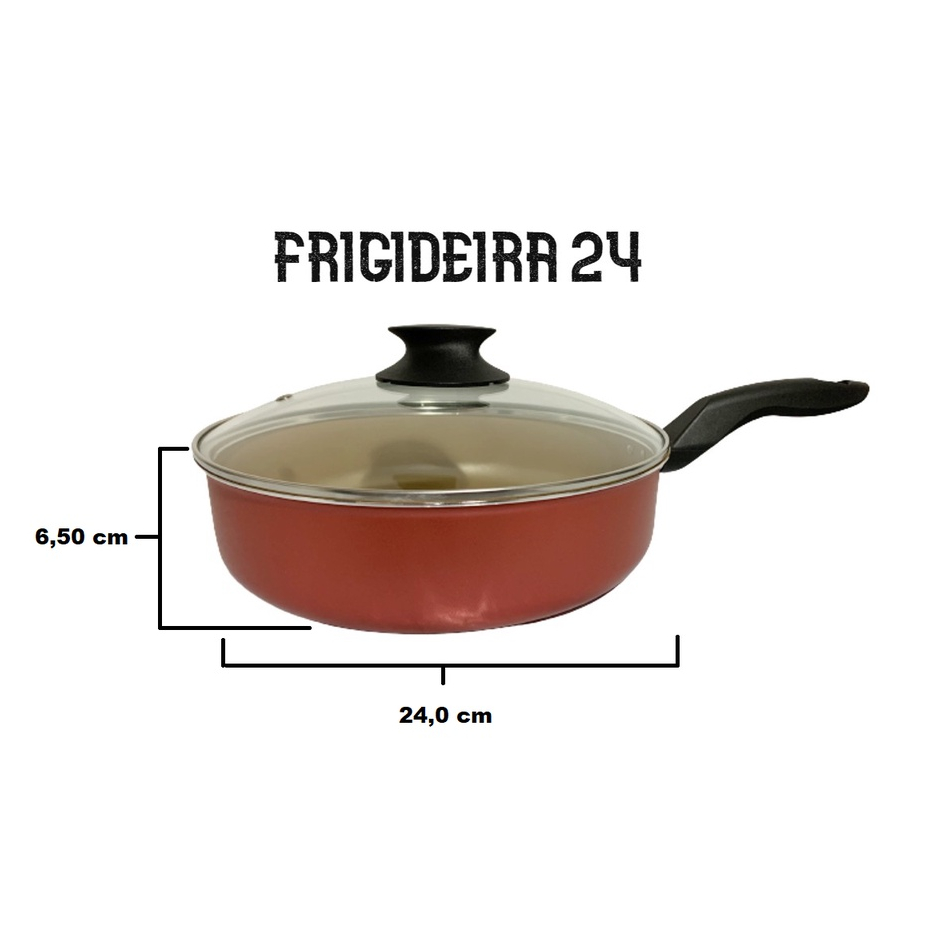 Frigideira Alta funda 24 Antiaderente Teflon Grande Com Tampa De Vidro e utensilio