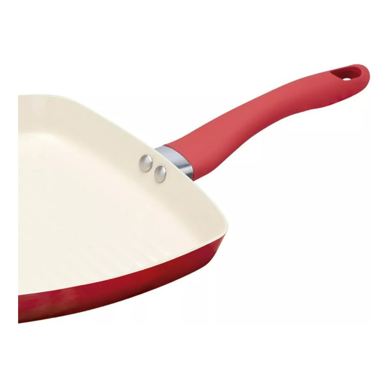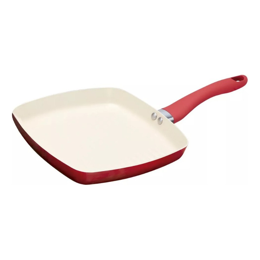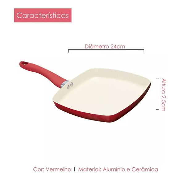 Frigideira Grill Alumínio Cerâmica Antiaderente 24cm Bistequeira Grelhar Sem Gordura Quadrada