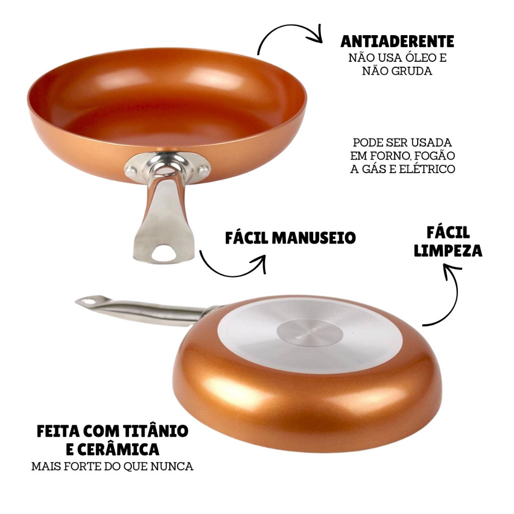 Frigideira Antiaderente Não Gruda Sem Óleo Cerâmica Titânio E Cobre