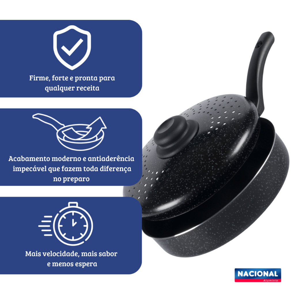 Frigideira Antiaderente Tampa De Fritura 22Cm Preto Nacional