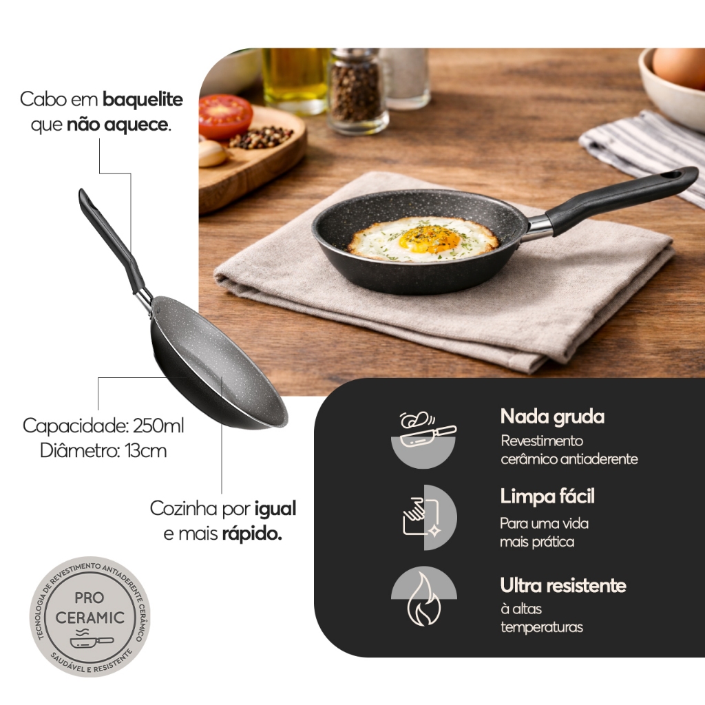 Frigideira Brinox Ceramic Life Naturalle Ø13cm 250ml Preto Ebony