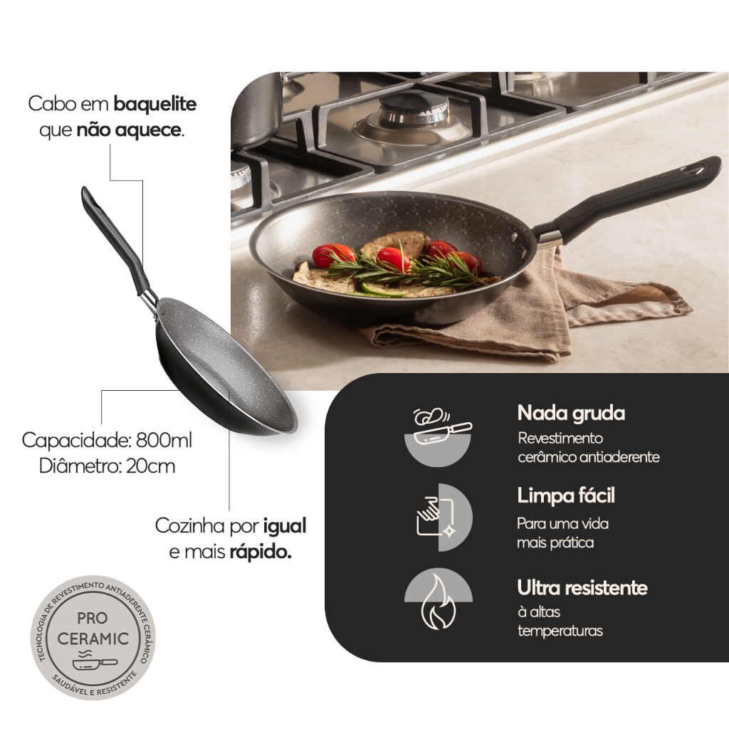 Frigideira Brinox Ceramic Life Naturalle Ø20cm 800ml Preto Ebony