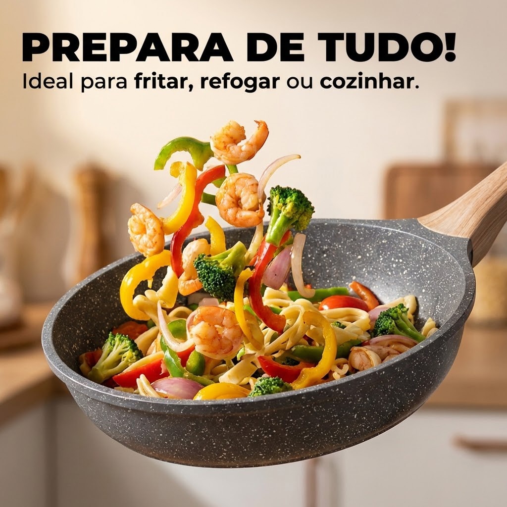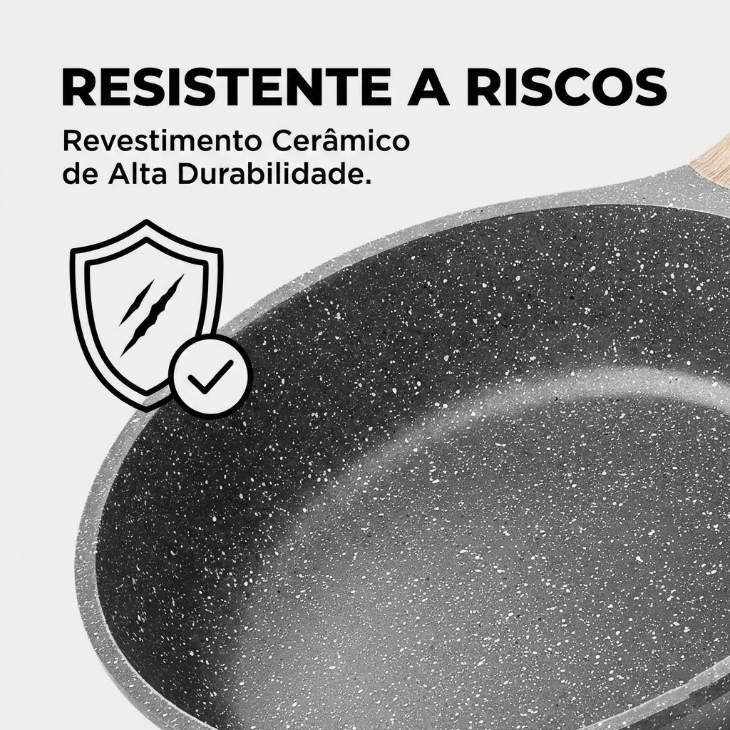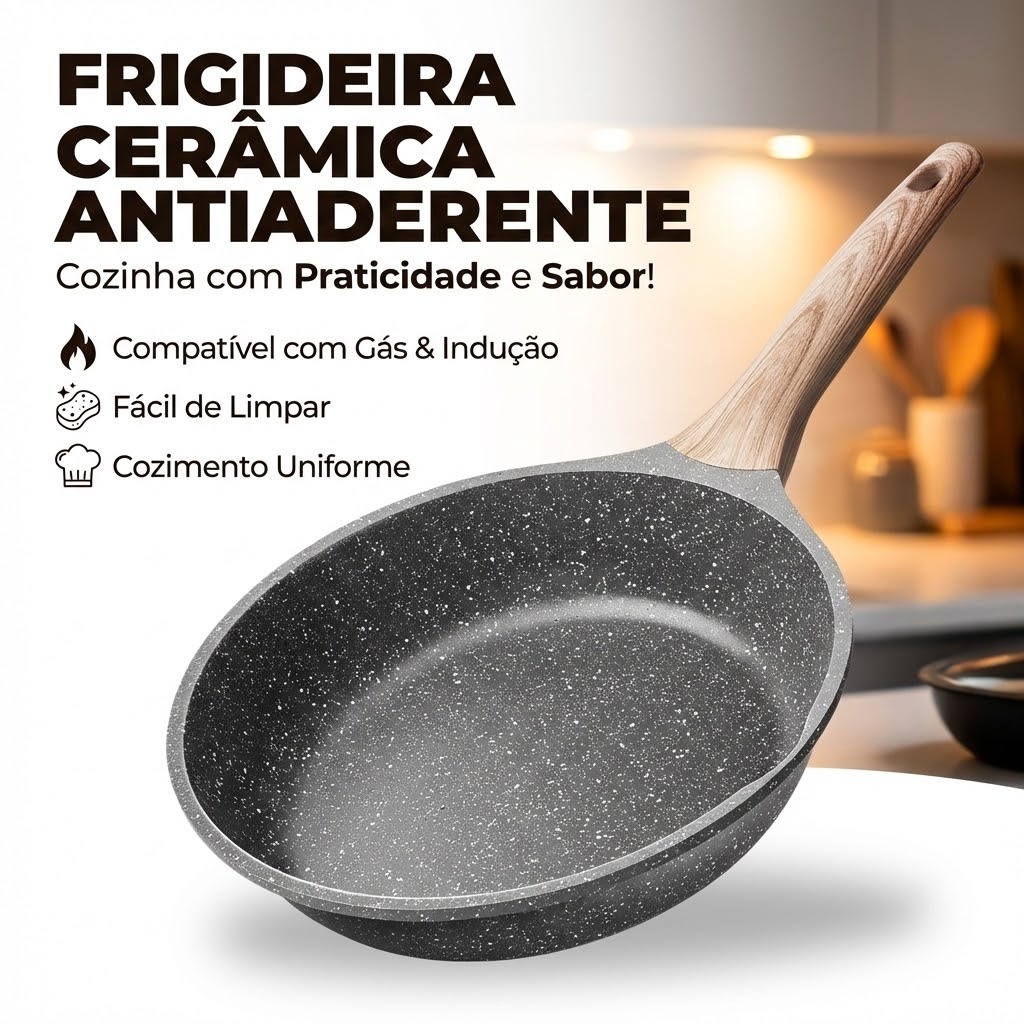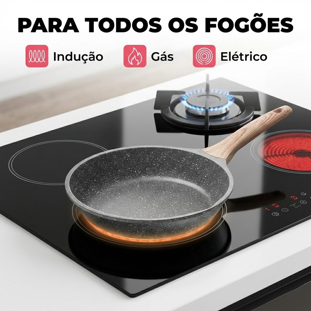Frigideira Cerâmica Antiaderente Grande 24CM Fogão Gás Indução Cooktop Elétrico Panela Sem Óleo