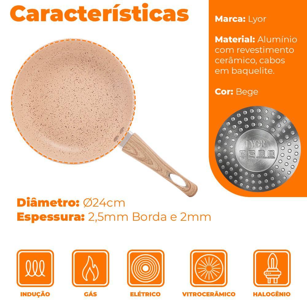 Frigideira De Indução Revestimento Antiaderente Cerâmica 24cm Bege - Lyor