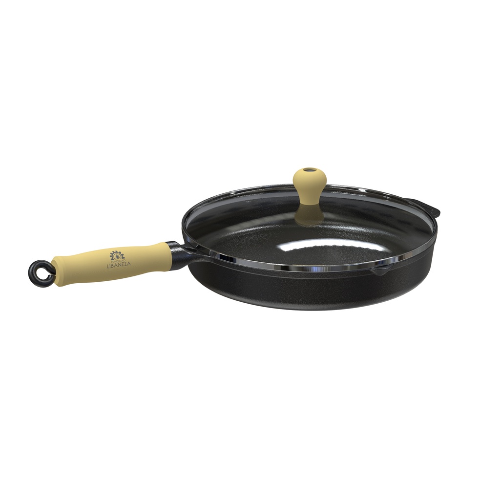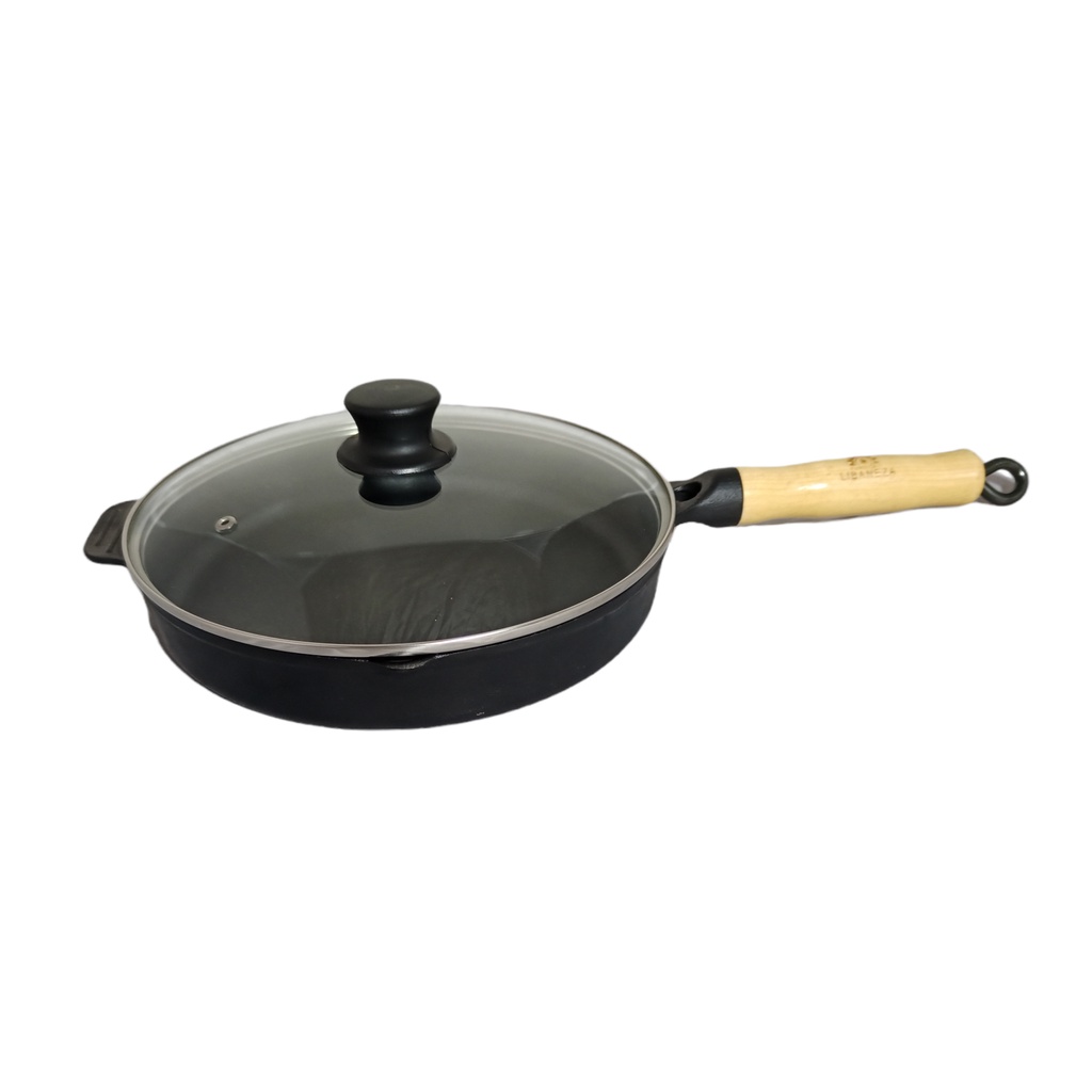 Frigideira Ferro Fundido C/tampa Vidro Cabo Madeira 26cm Lib