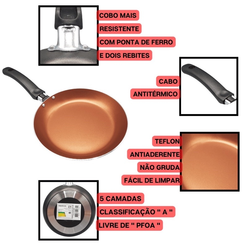 Frigideira Francesa Antiaderente Premium Nº18, 20, 22 e 24 cm com Revestimento em Cobre