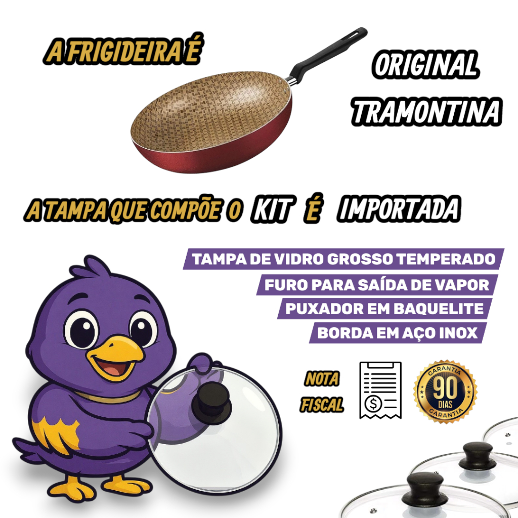 Frigideira Funda Antiaderente 24 Cm Tramontina Com Tampa de Vidro Temperado
