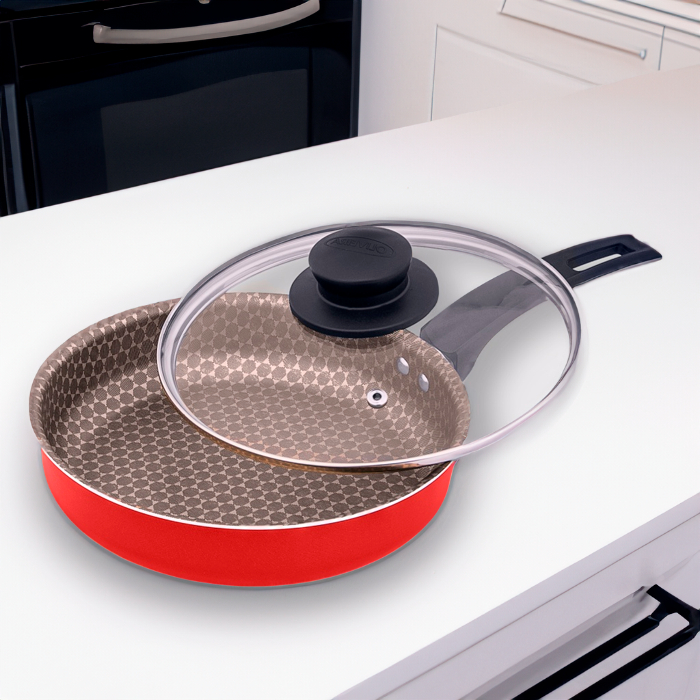 Frigideira Funda Luxury Red 20 Antiaderente Tampa Vidro