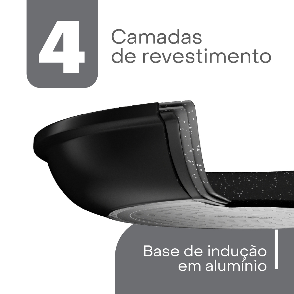 Frigideira Lyor de Alumínio e Cerâmica Granilite Preta 24cm