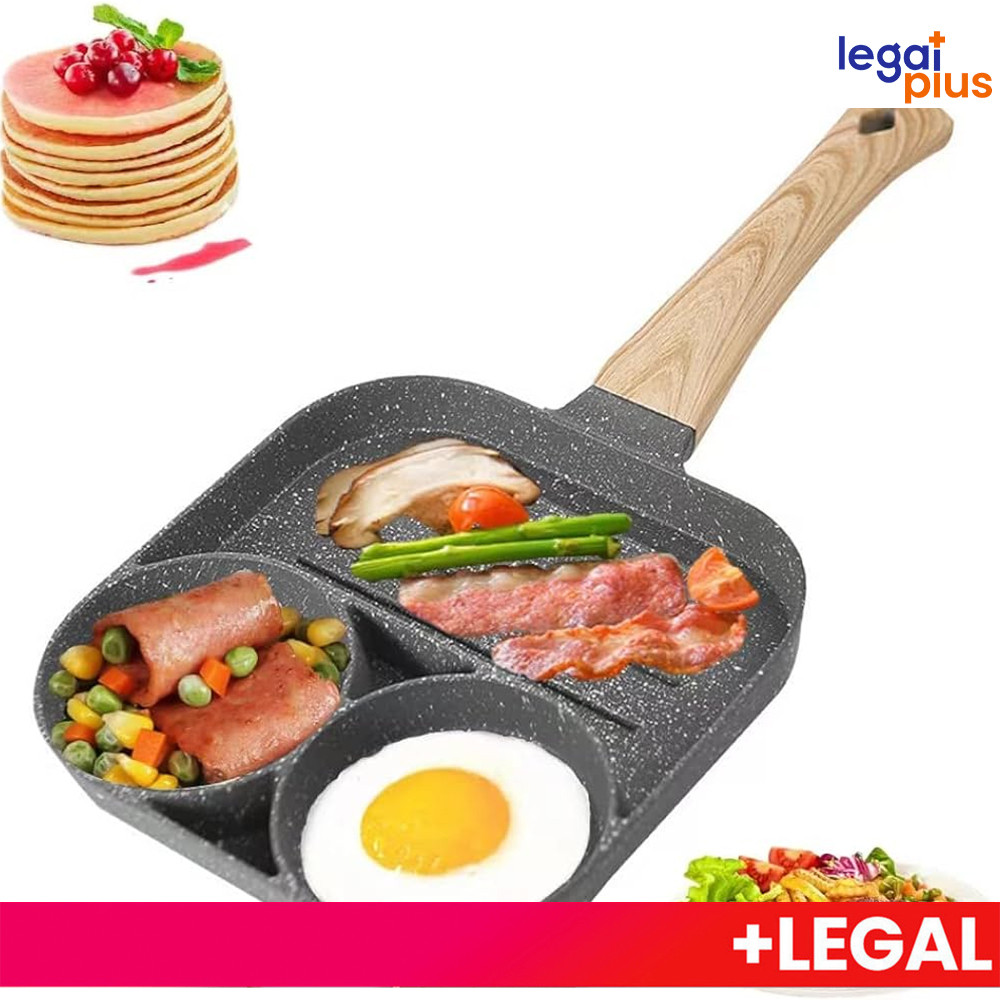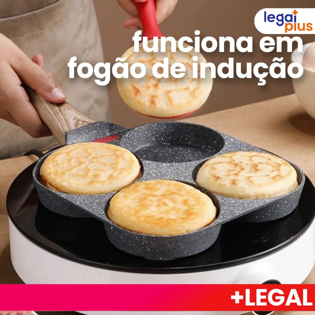 Frigideira Multifuncional Antiaderente 4 em 1 Ovos Hambúrguer Omelete Com Alça De Madeira funciona em fogão de indução