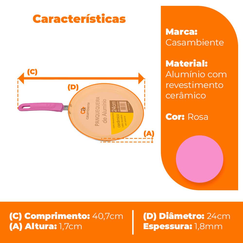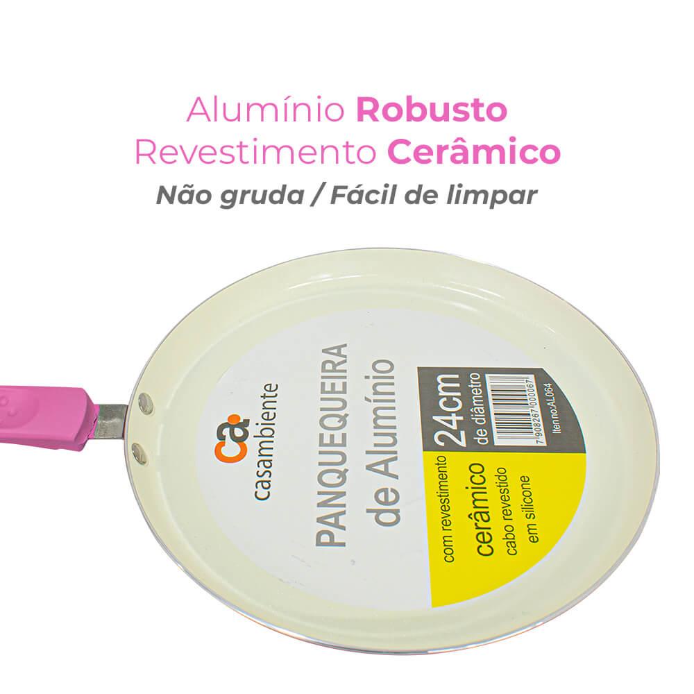 Frigideira Panquequeira Antiaderente Cerâmica 24cm Rosa - Casambiente
