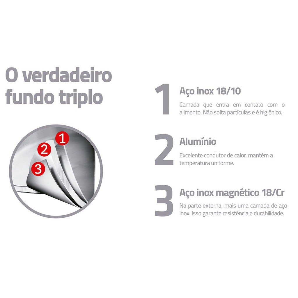 Frigideira Tramontina Allegra 24 cm 2,1 Litros em Aço Inox com Fundo Triplo de indução