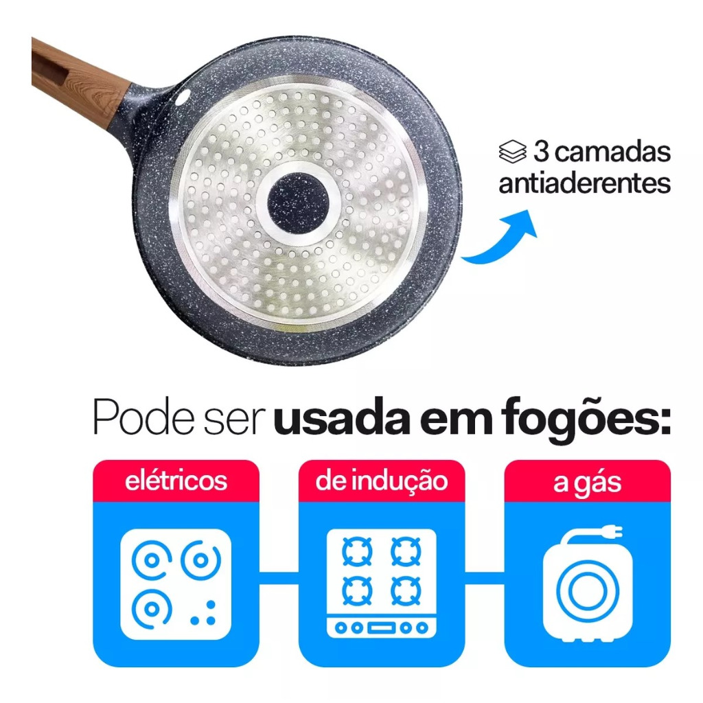 QIU - Frigideira Revestida Cerâmica Antiaderente Com ou Sem Tampa Fogão Cooktop Indução e Gás