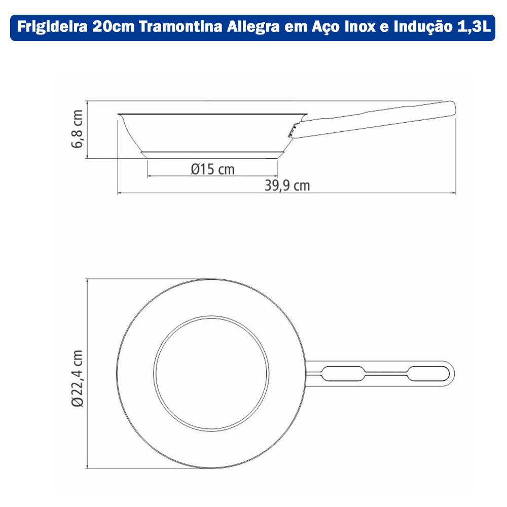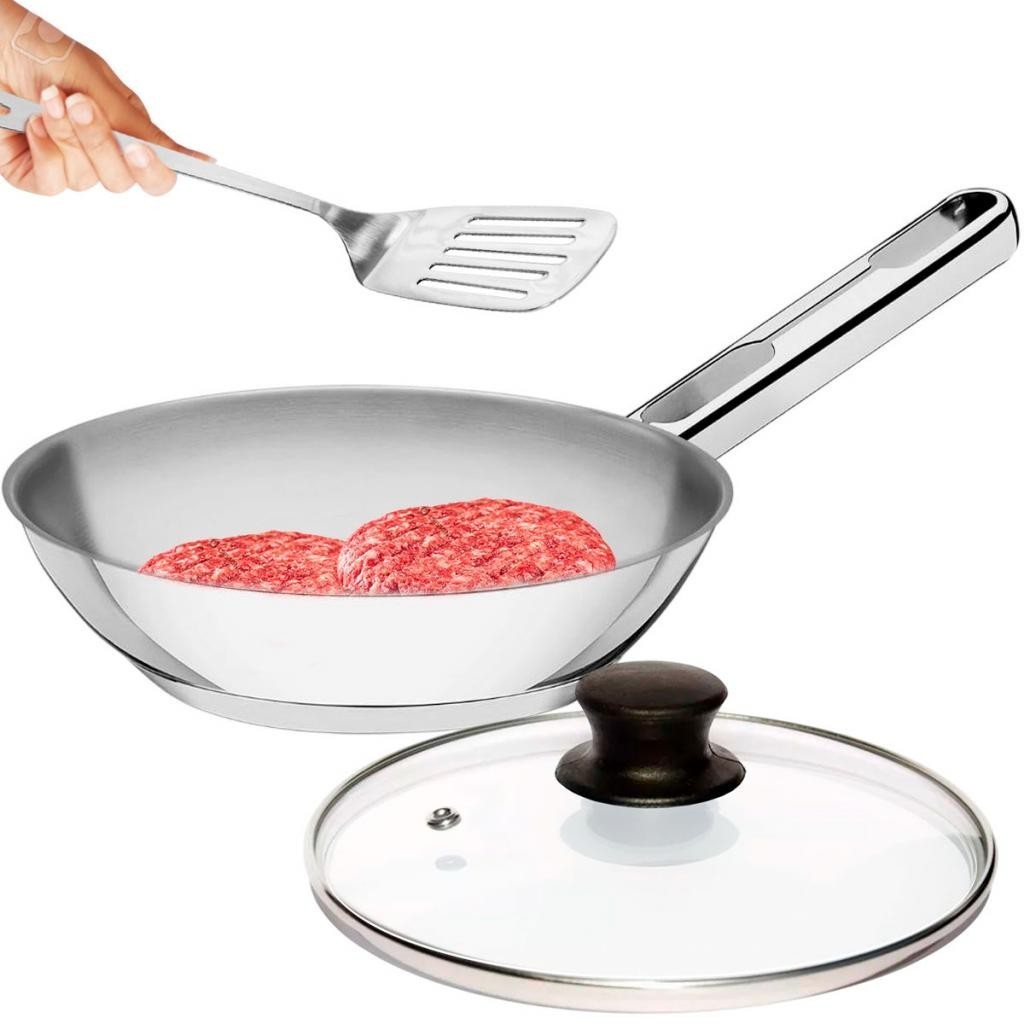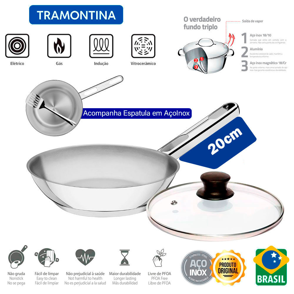 Frigideira com Tampa 20cm Tramontina Allegra em Aço Inox e Indução 1,3L e Espátula Vazada Inox