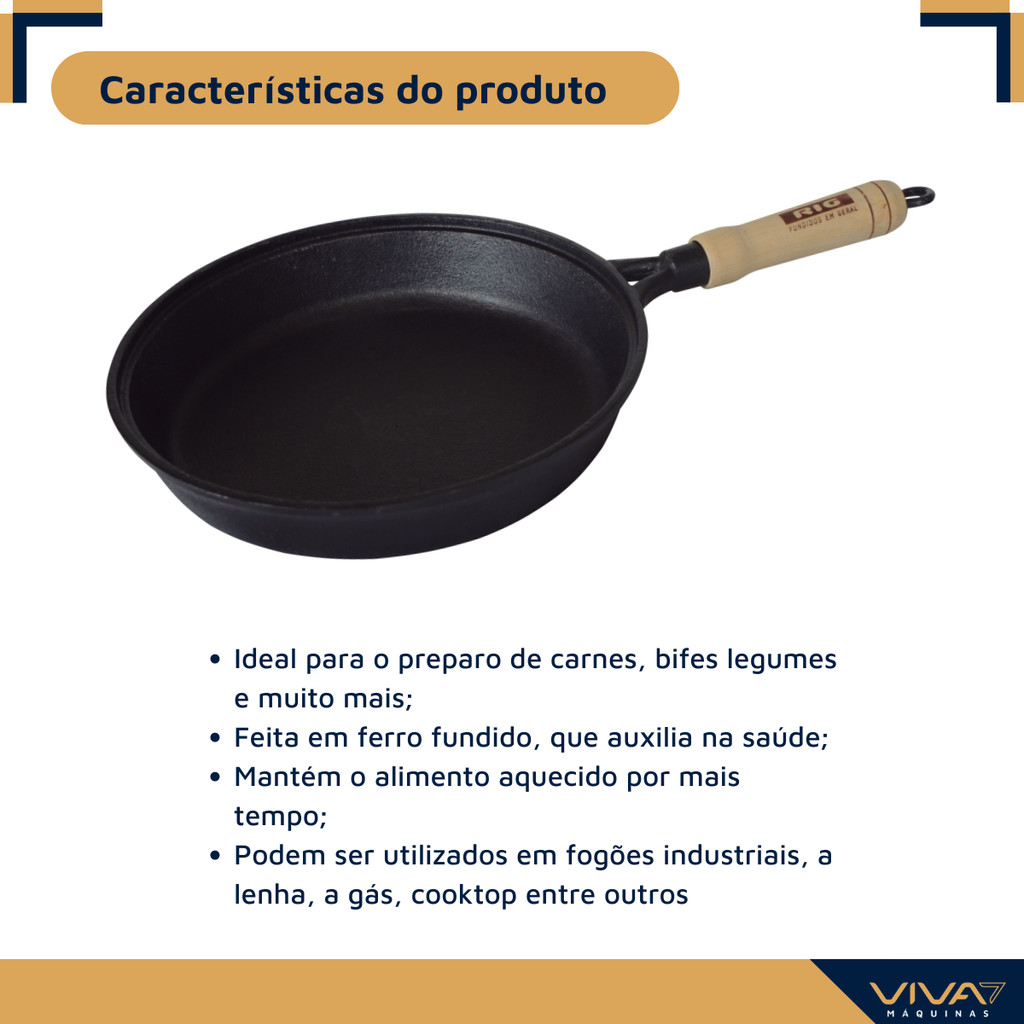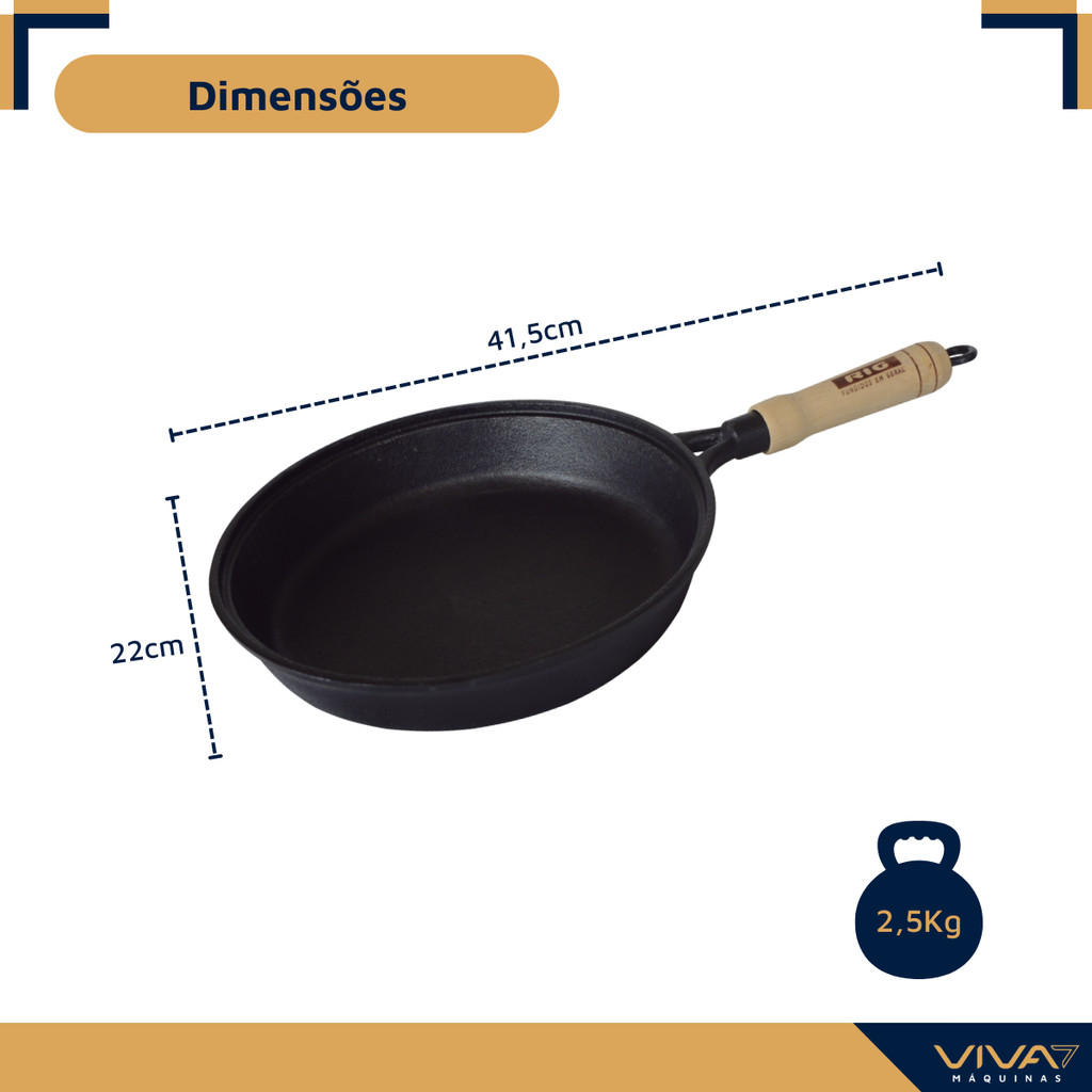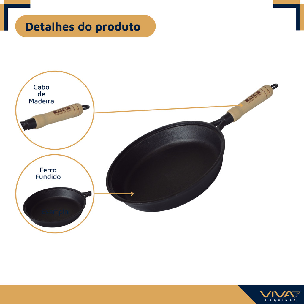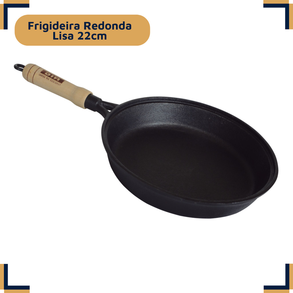 Frigideira de Ferro Fundido Antiaderente Cabo de Madeira 20 cm Sem Tampa Fritadeira Funda